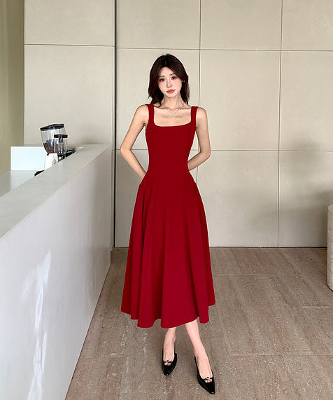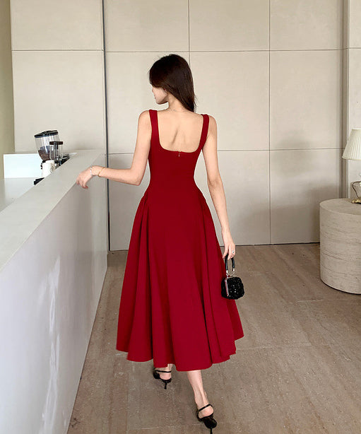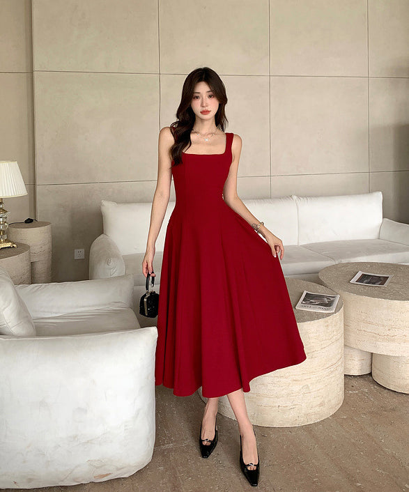 【2色】膝丈ドレス 高級感 ラAイン 着痩せ 名媛風 セクシー おしゃれ YH2-ZED889769GT347