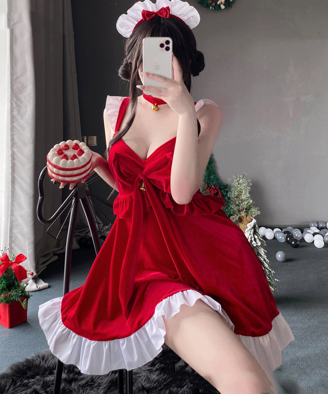 【3点セット】クリスマ サンタコス Aライン 着瘦せ 大人可愛い セクシー サンタ服 コスプレリボン XH2-JXL-S11