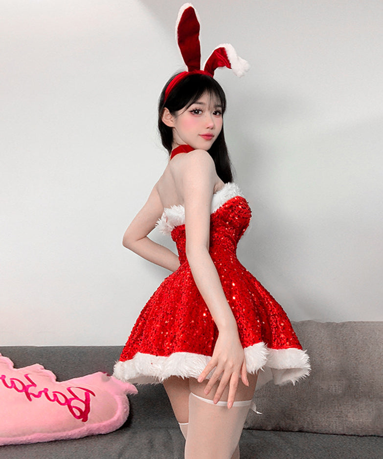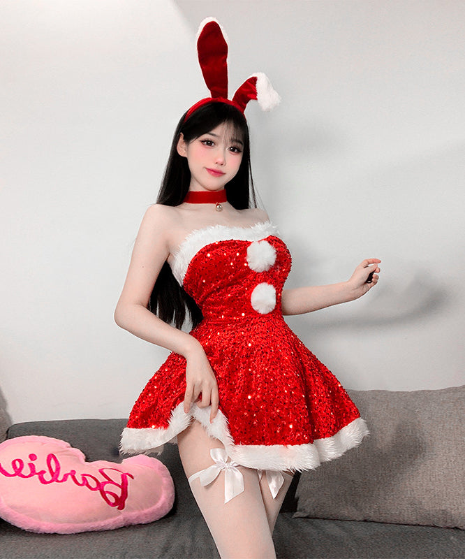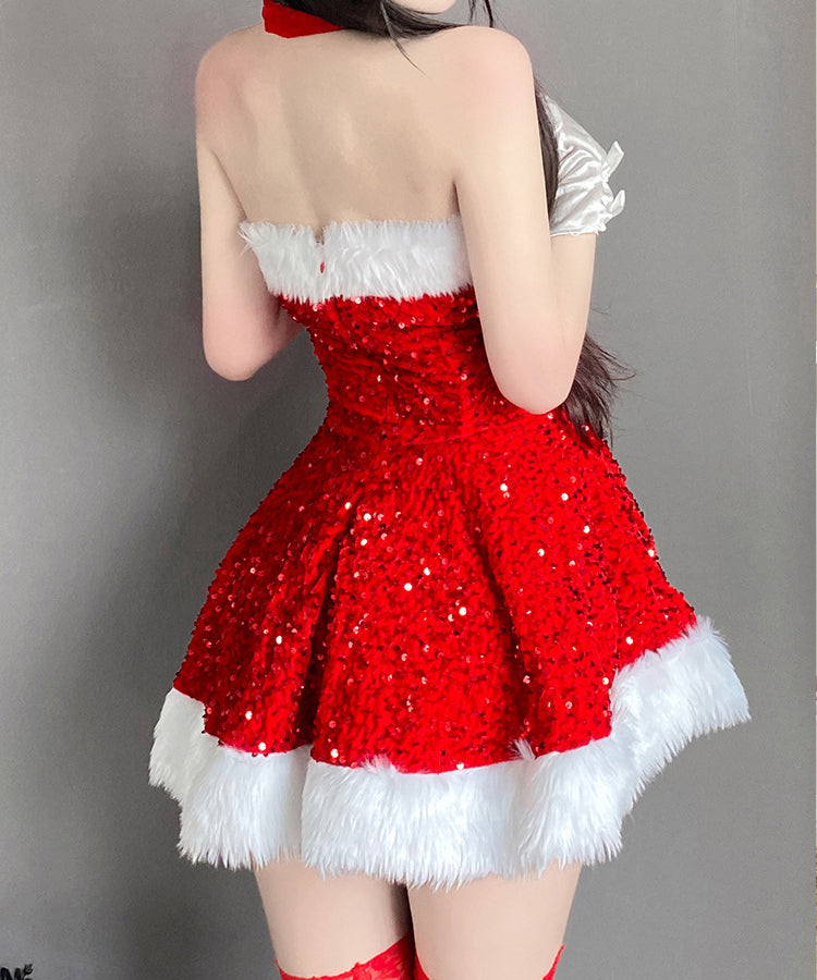 【3点セット】コスプレ服 かわいい サンタ服 キラキラ ベアトップ キャバドレス ミニドレス 新作 XH2-YDWY79