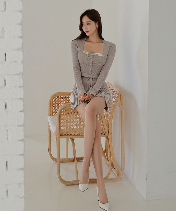 【3点セット】ミニドレス 通勤 セレブ風 エレガント 気質 ニットドレス XH2-ZED889725BH538