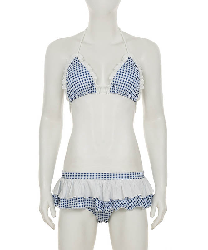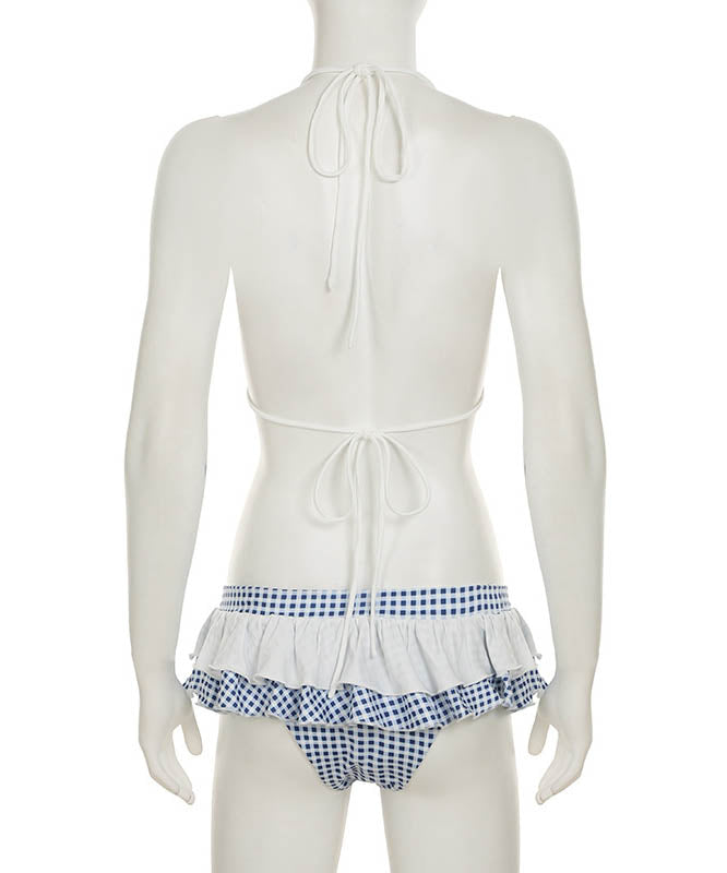 3色ビキニ水着チック柄セクシーフリルホルターネックビーチ海旅行谷間見せSNS話題 WQ7-SSN-AWCS32876