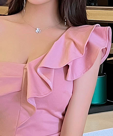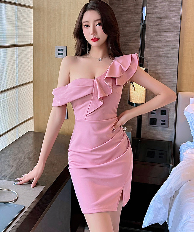 【3色】キャバドレスミニドレスワンーショルダーフリルセクシーエレガントナイトクラブパーティー非対称 WQ2-DD4733
