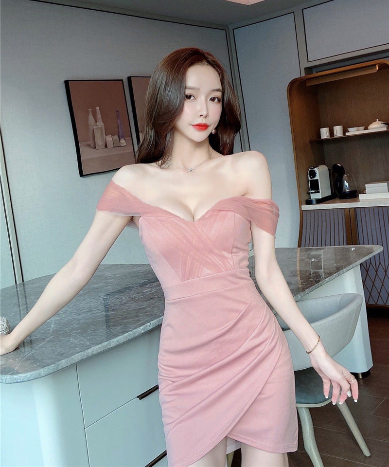 【3色】キャバドレス ミニドレス セクシー 谷間露出 ワンショルダー タイトドレス YH2-DD8137