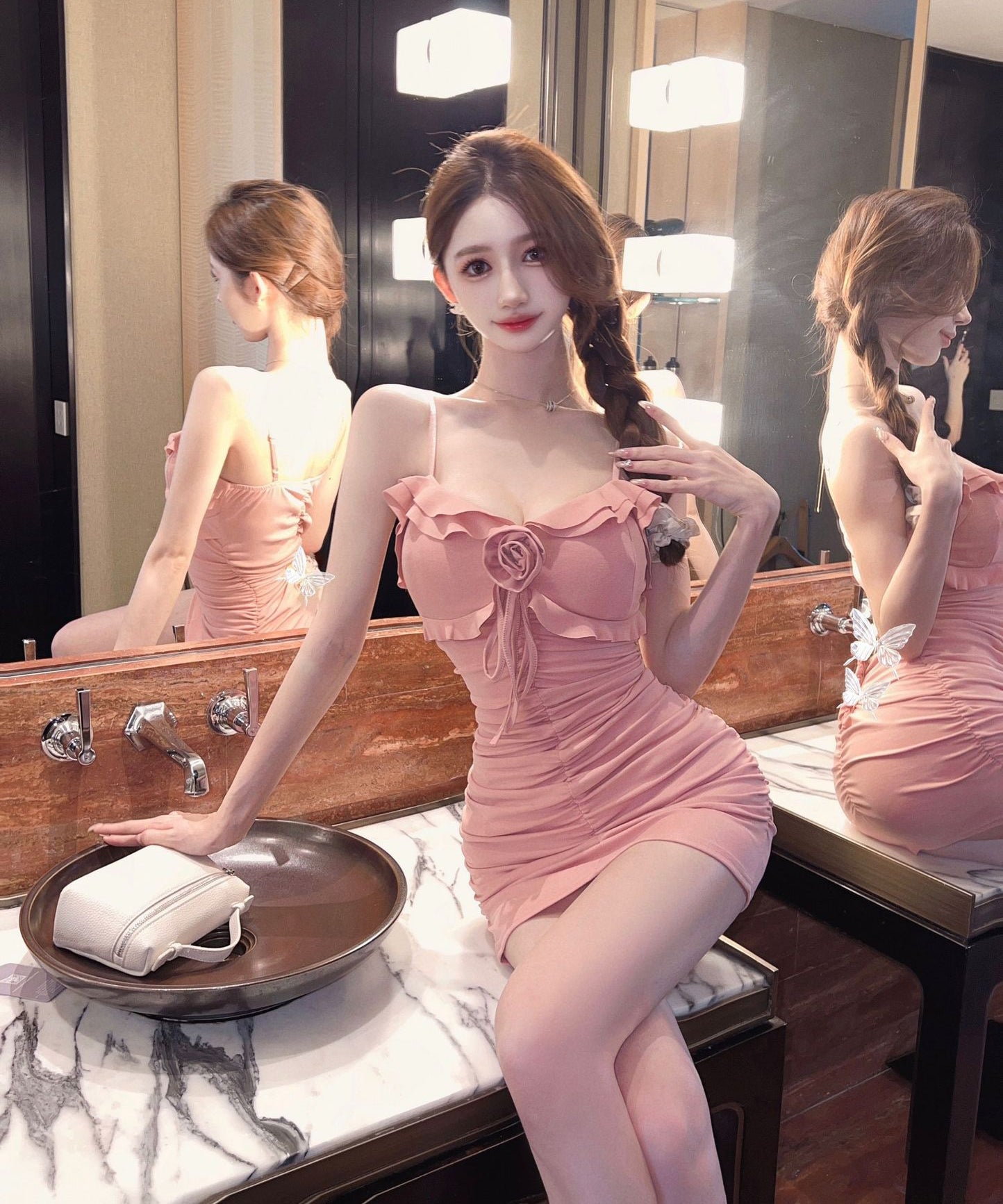 【3色】キャバドレス ミニドレス セクシー party フラワー 谷間見せ YH2-DD6399