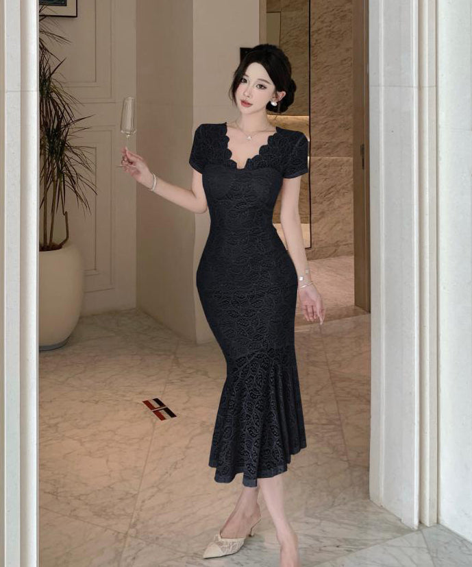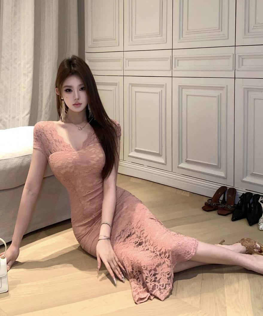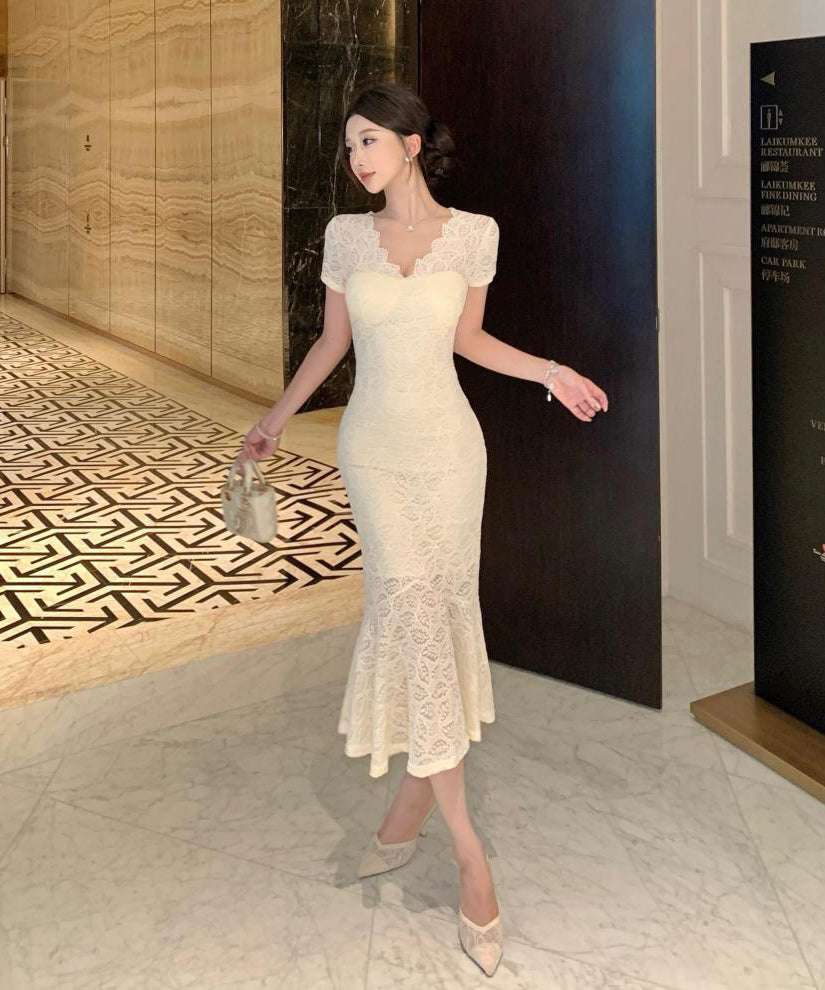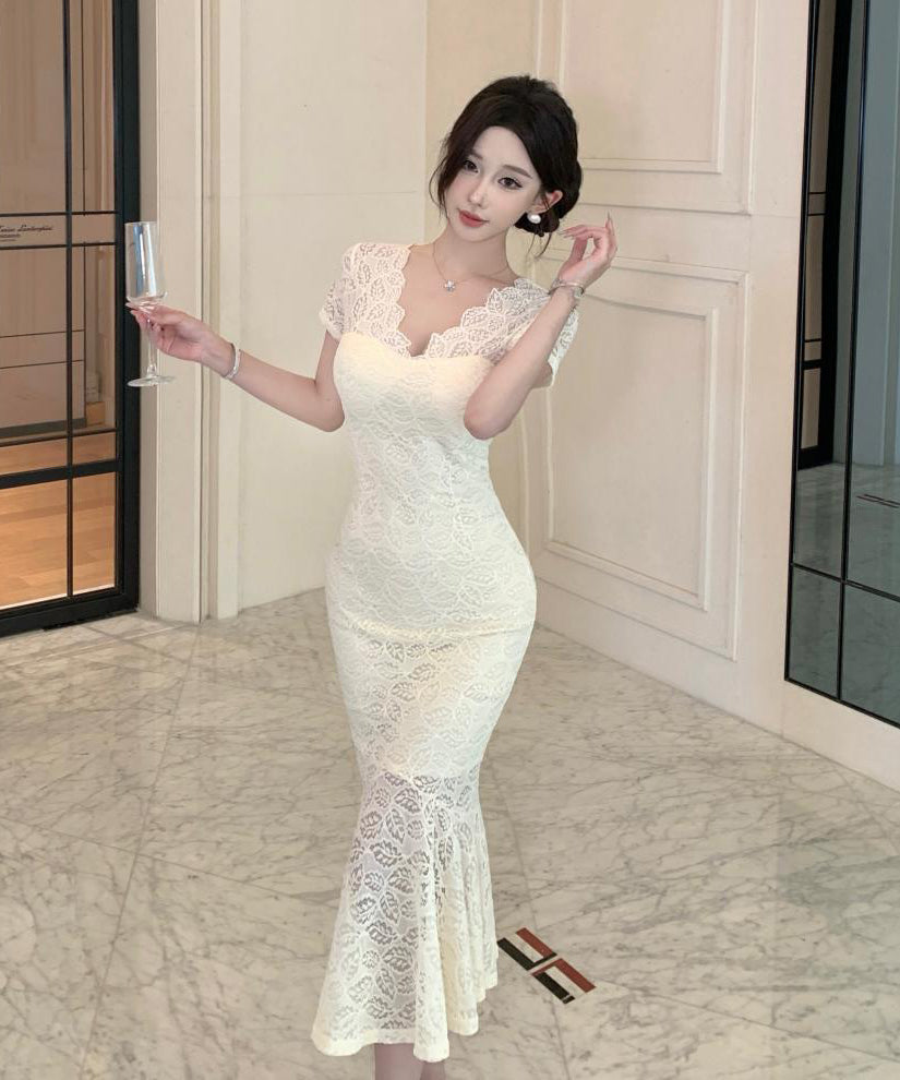 【3色】キャバドレス 膝丈ドレス エレガント レース Vネック マーメイドドレス 宴会 パーティー XH2-CD7-343-91760530