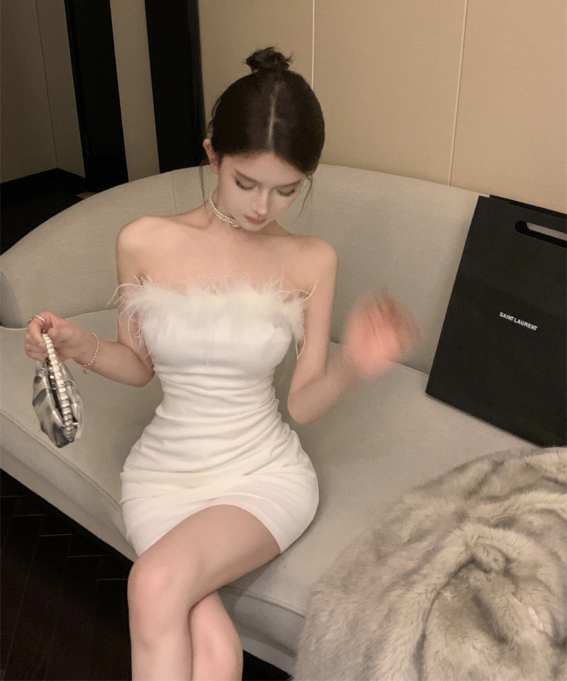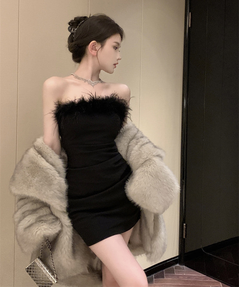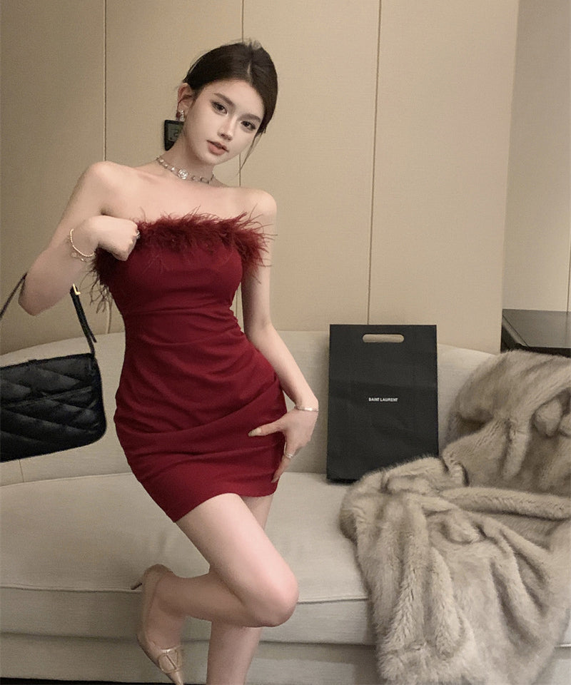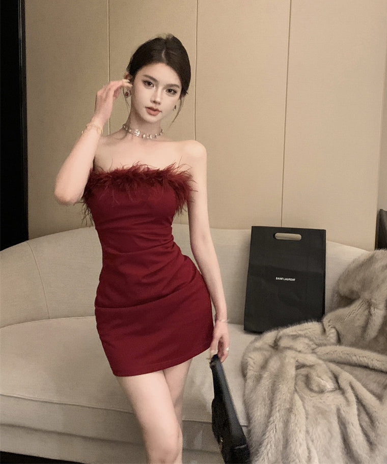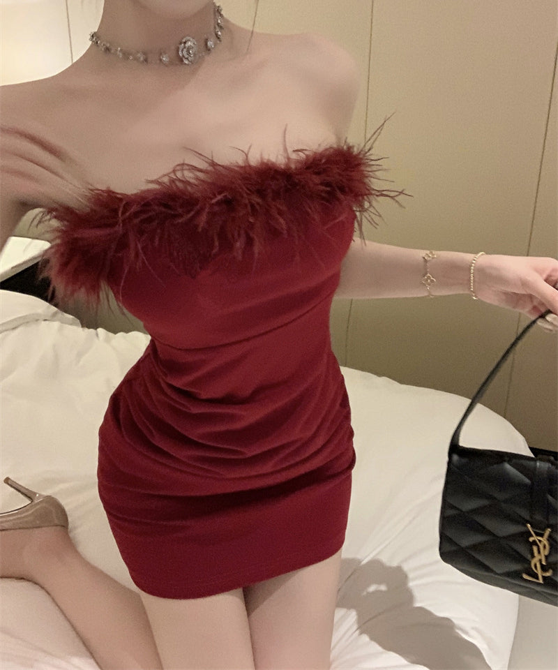 【3色】ミニドレスベアトップふわふわキャバドレスセクシーパーティーキャバクラタイトドレスXH2-XKD-D308-6763-Dec14