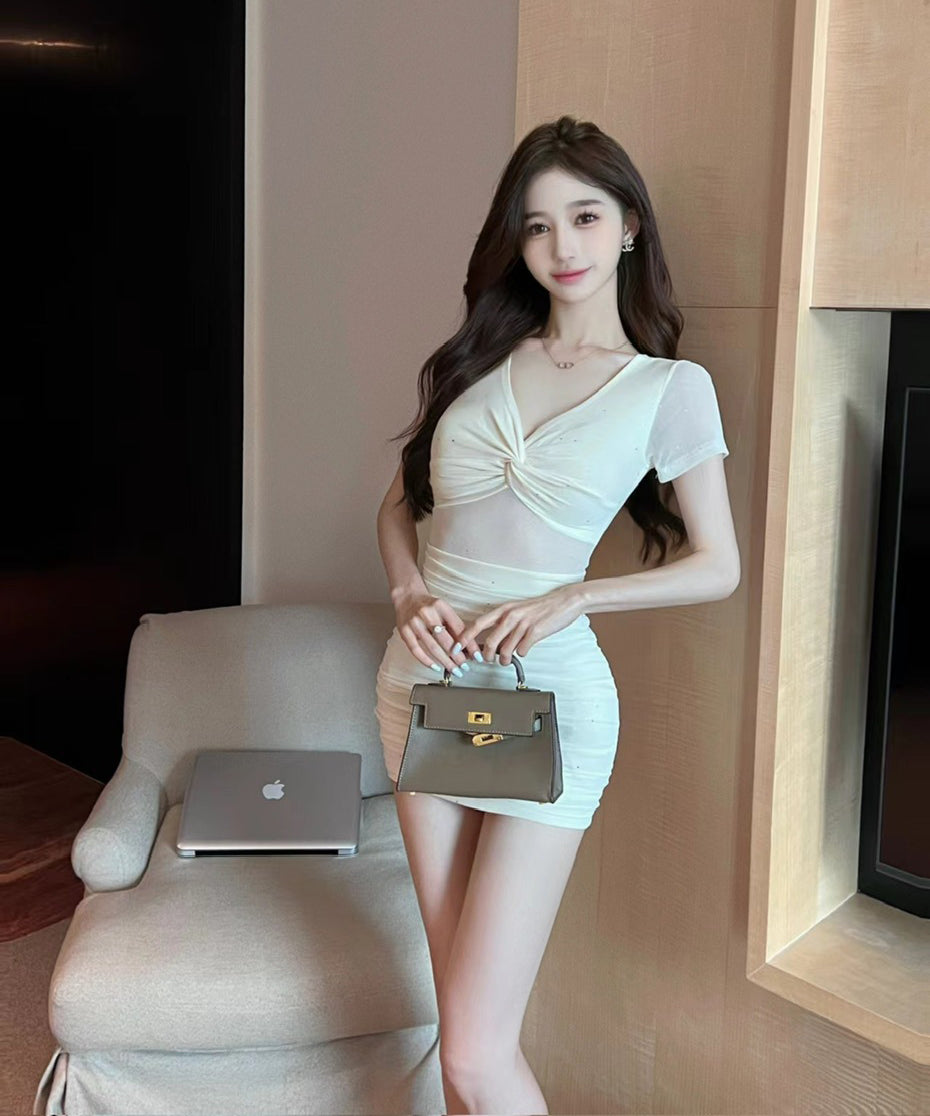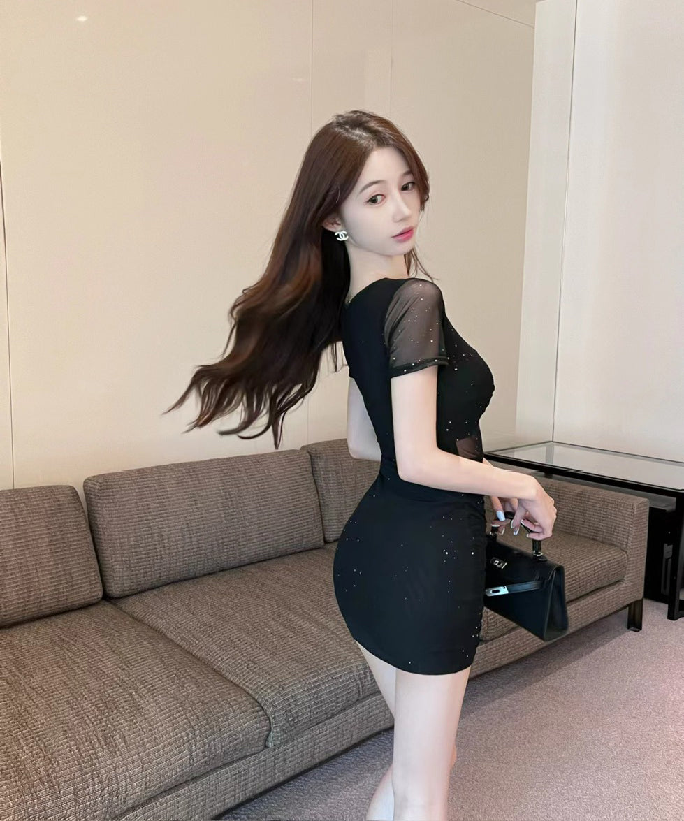 【3色】ミニドレス キャバドレス セクシー キラキラ Vネック 透け感 着痩せ YH2-DD6807