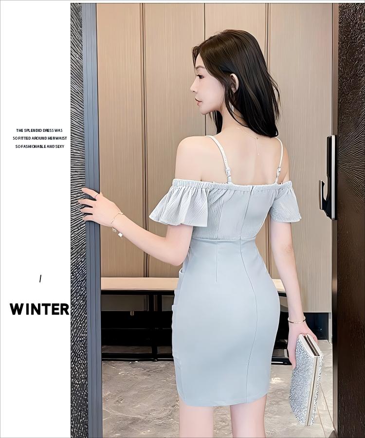 【3色】ミニドレス キャバドレス ミニドレス セクシー バブルスリーブ ボディコン オフショルダー タイトフィット JC2-YM8870