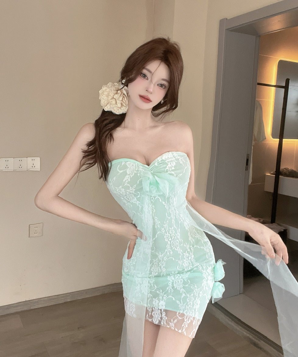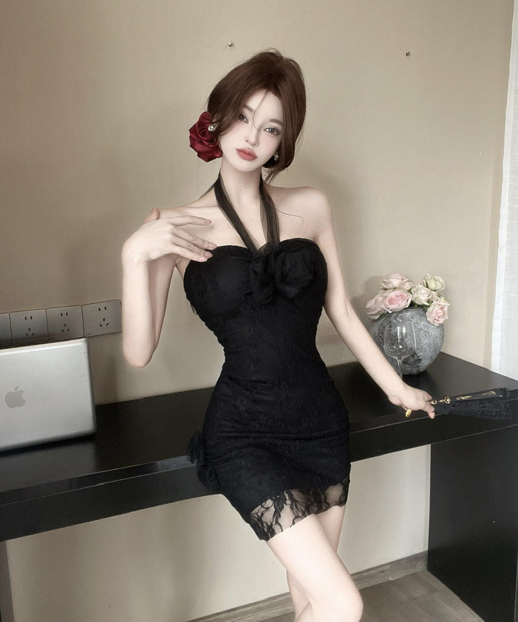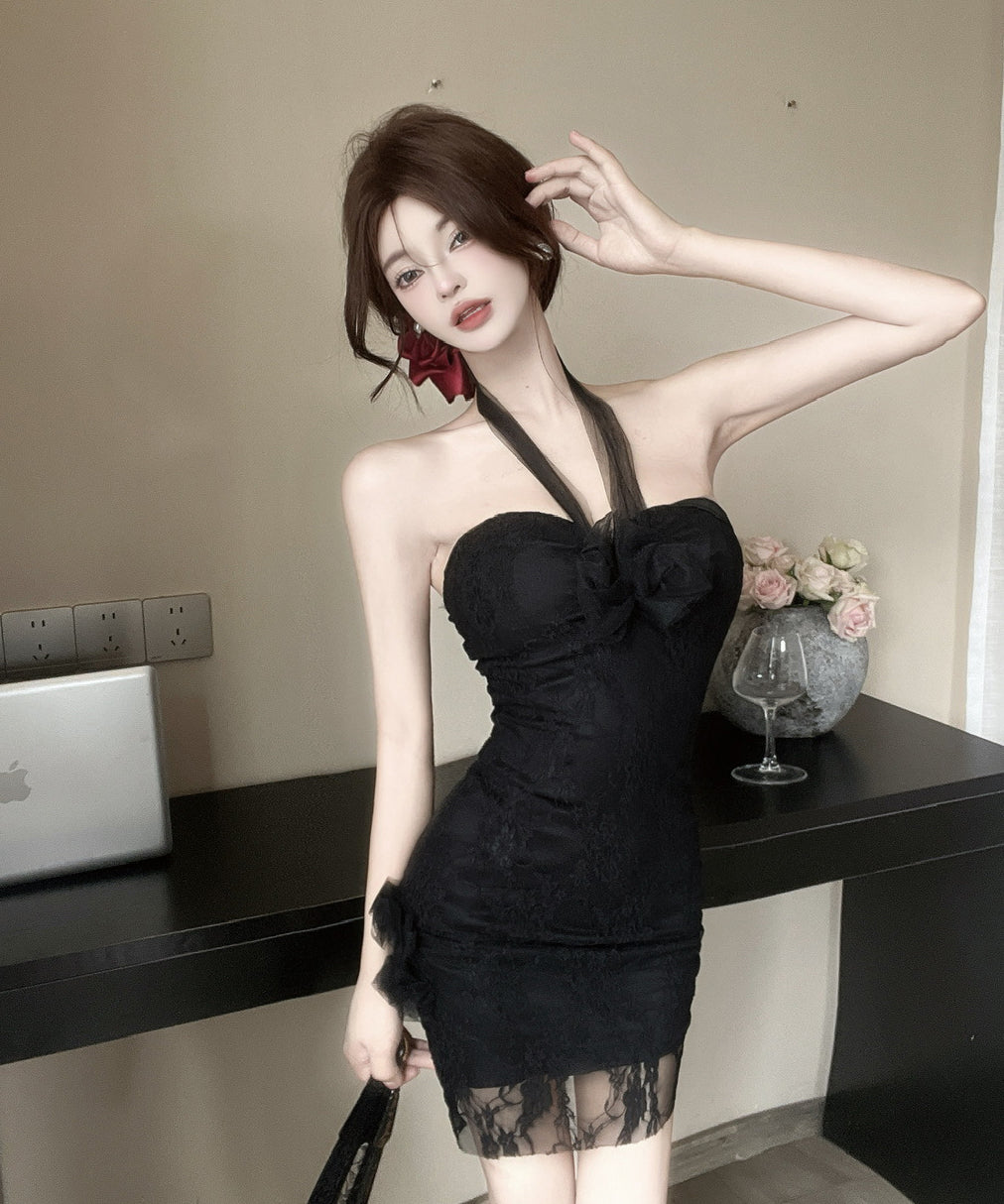 【3色】ミニドレス キャバドレス レース ホルターネック おしゃれ セクシー YH2-DD6690