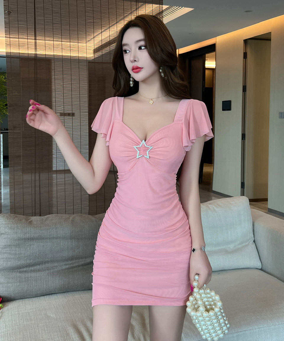 【3色】ミニドレス キャバドレス 谷間露出 フリル おしゃれ セクシー Vネック YH2-DD6917