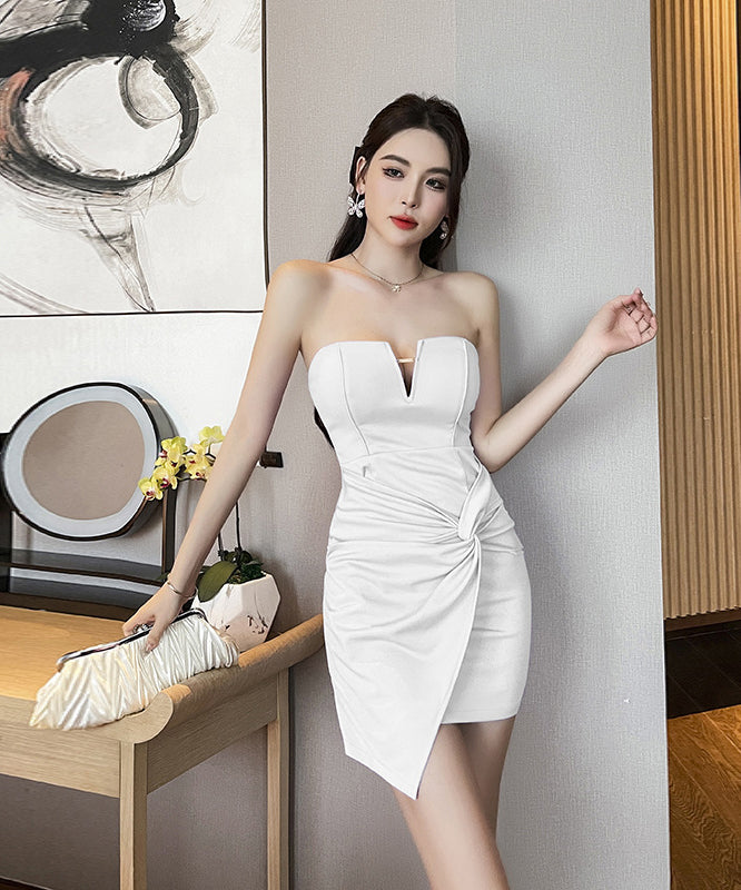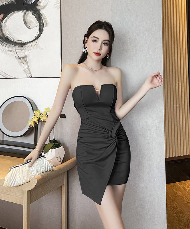 【3色】ミニドレス ベアトップ セクシー キャバドレス 谷間見せ ナイトクラブ XH2-YM8794