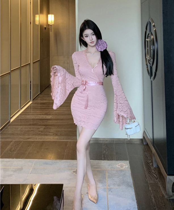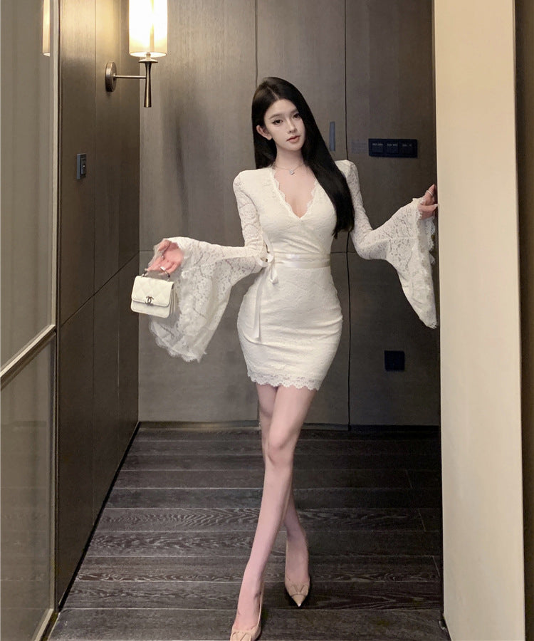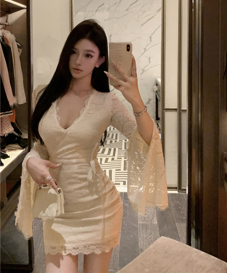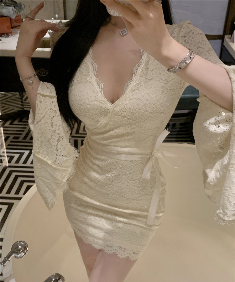 【3色】ミニドレス レース キャバドレス 谷間見せ セクシー 気質 エレガント 指名 XH2-XKD-D529-6573-Oct26