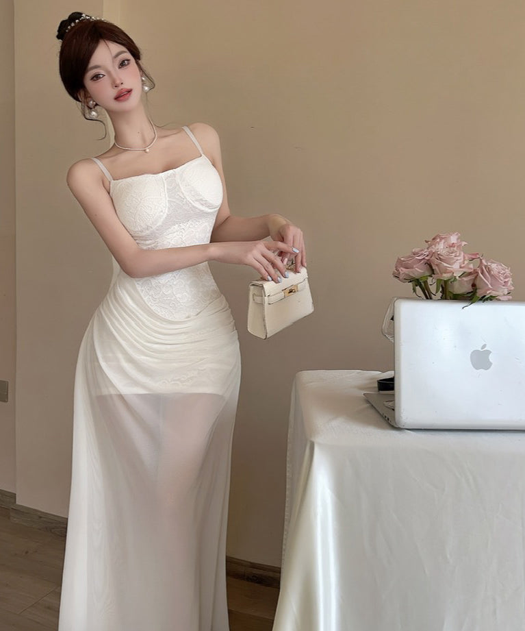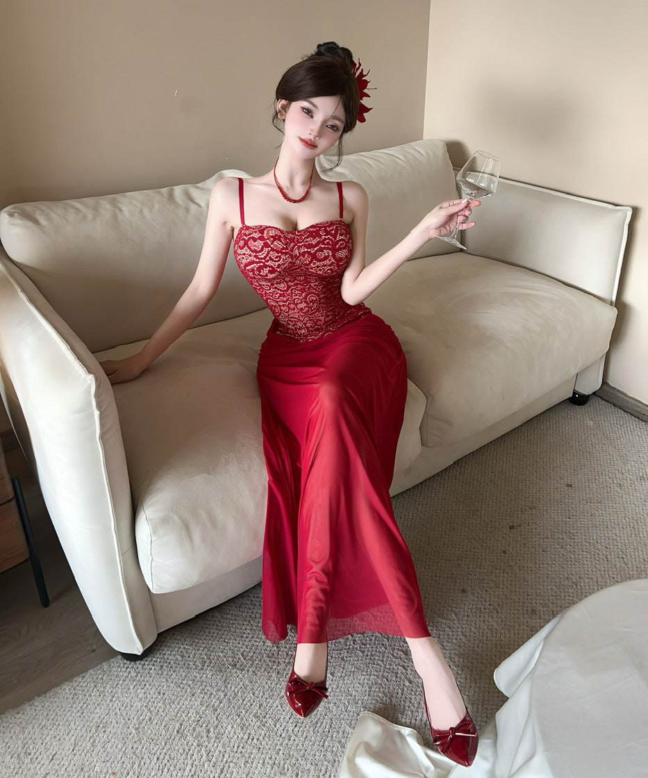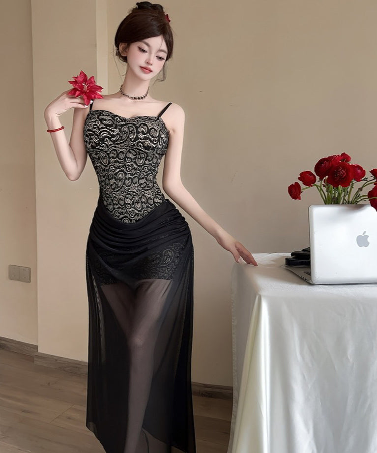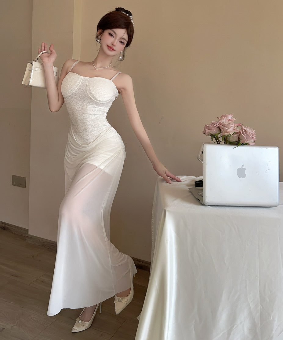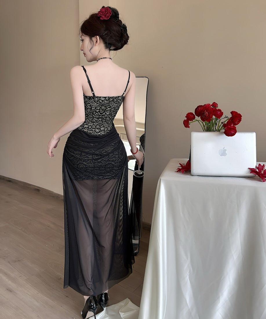 【3色】ロングドレスキャミワンピセクシーレースチュールキャバドレスキャバクラ着痩せパーティー指名 WQ2-DD4356