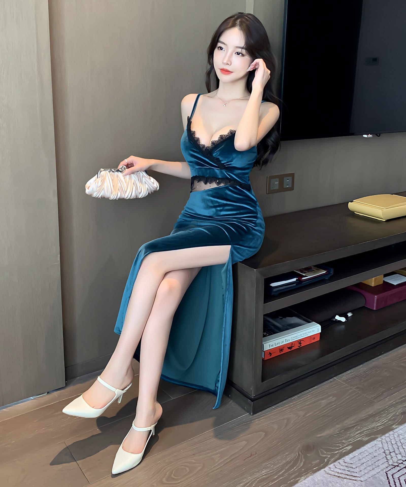 3色 ロングドレス キャバドレス キャバドレス レース 谷間魅せ 新作 美脚効果 MY2-MLS6053