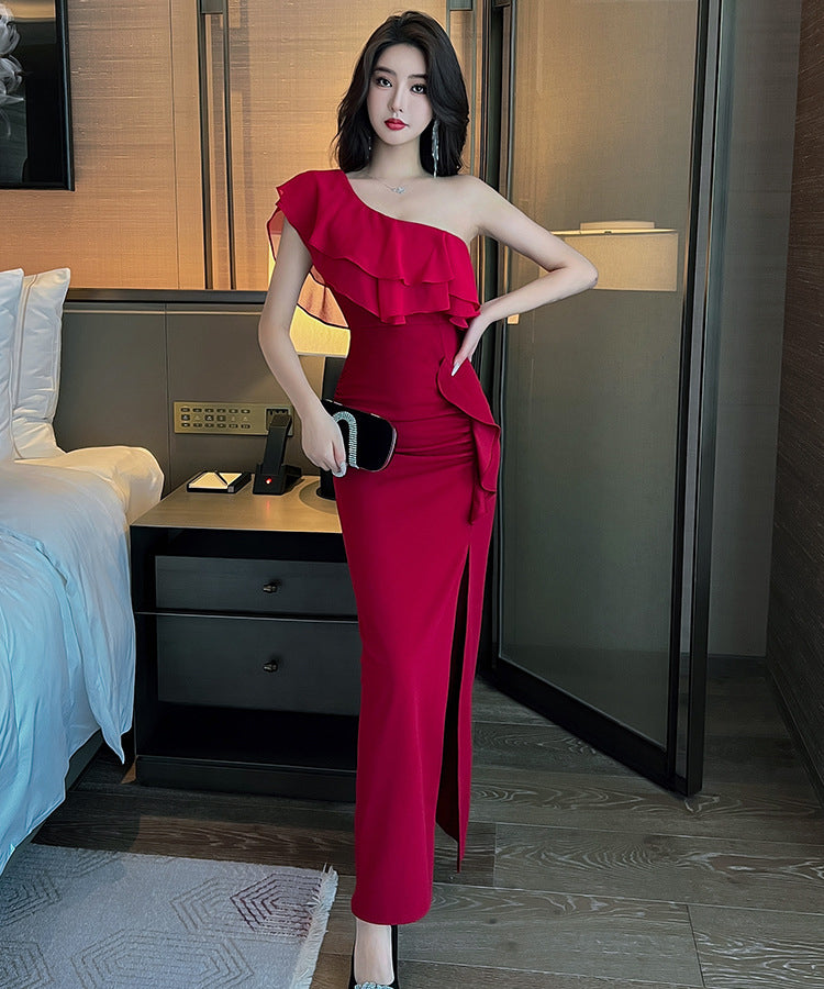 【3色】ロングドレス キャバドレス ワンーショルダー セクシー 宴会 party XH2-DD5030