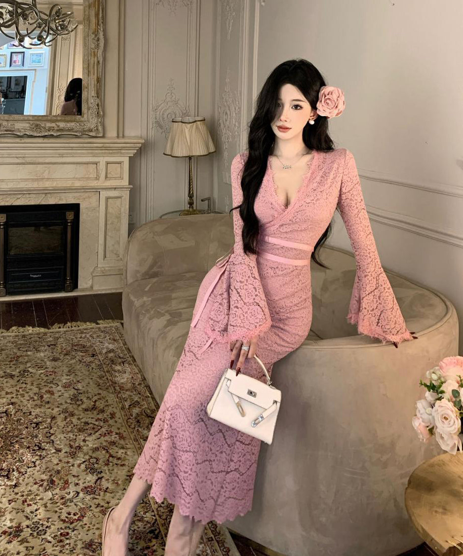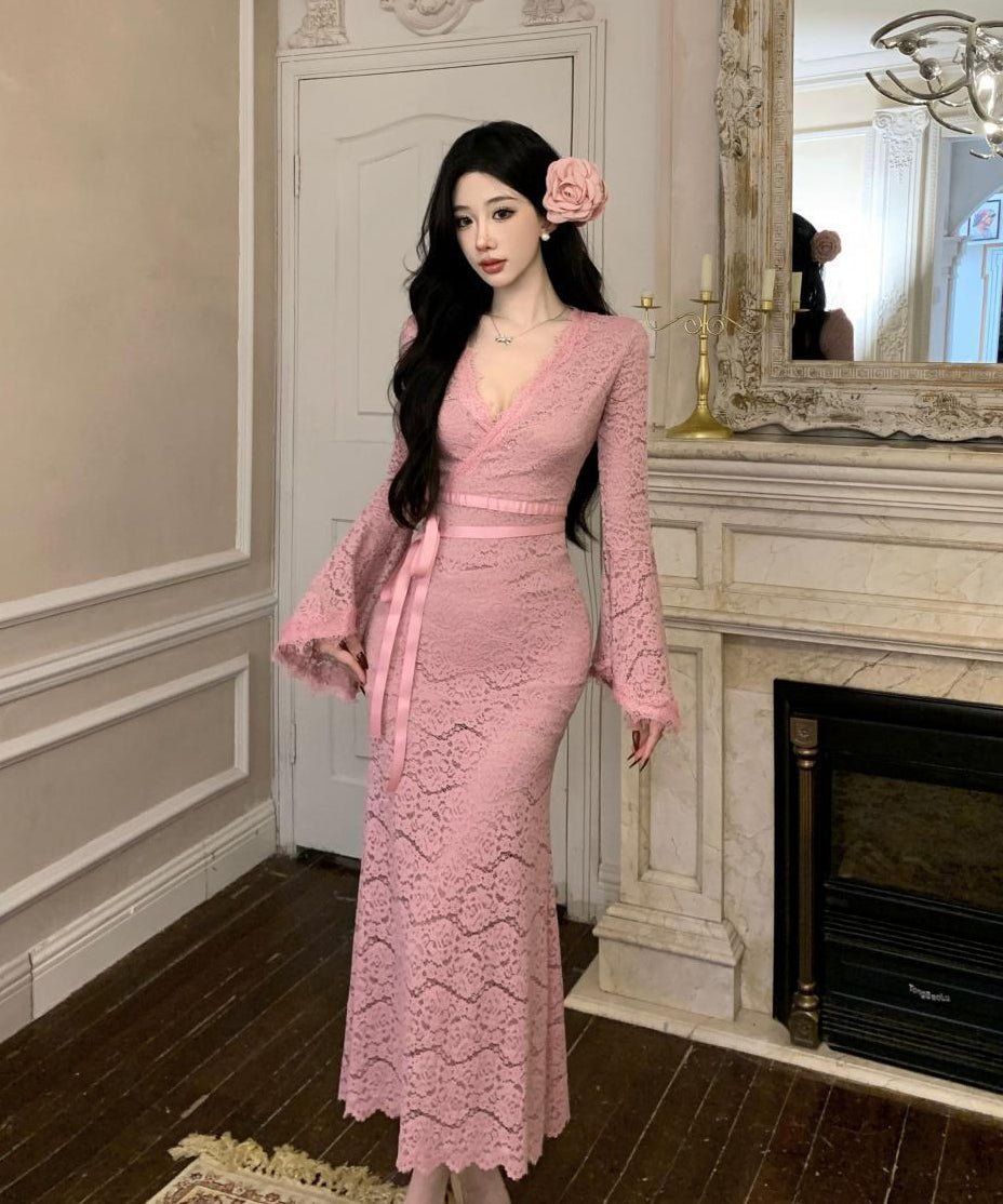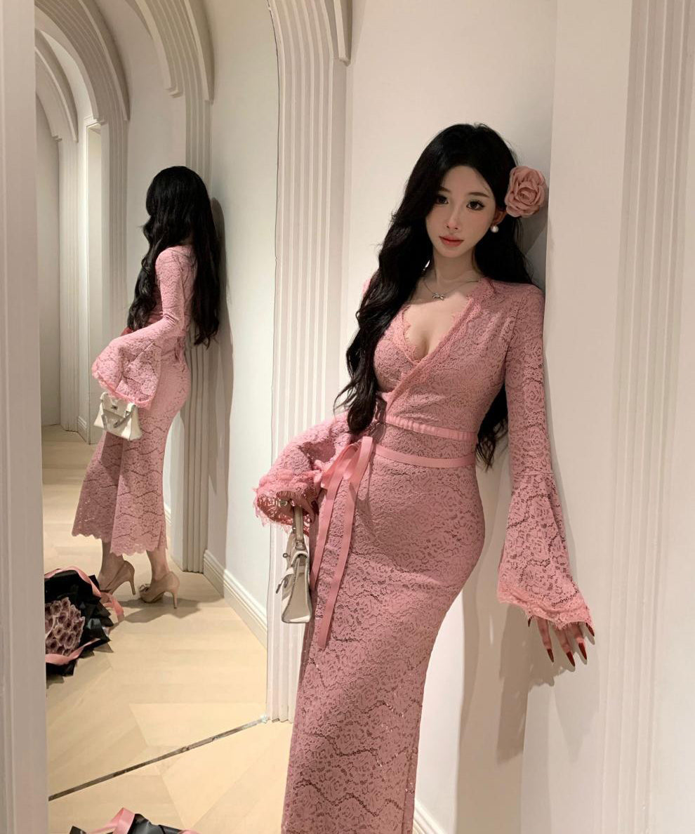 【3色】ロングドレス レース キャバドレス 谷間見せ セクシー 気質 エレガント 指名 XH2-ZED888568XH238A
