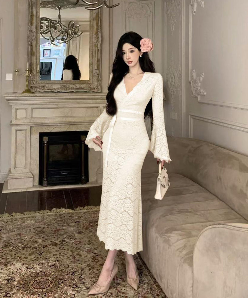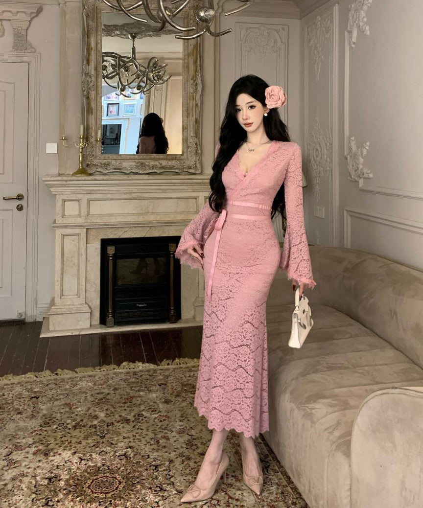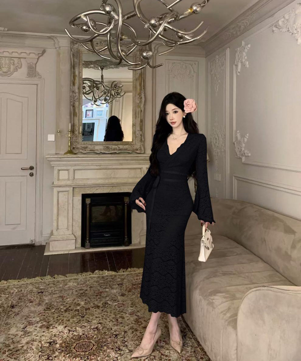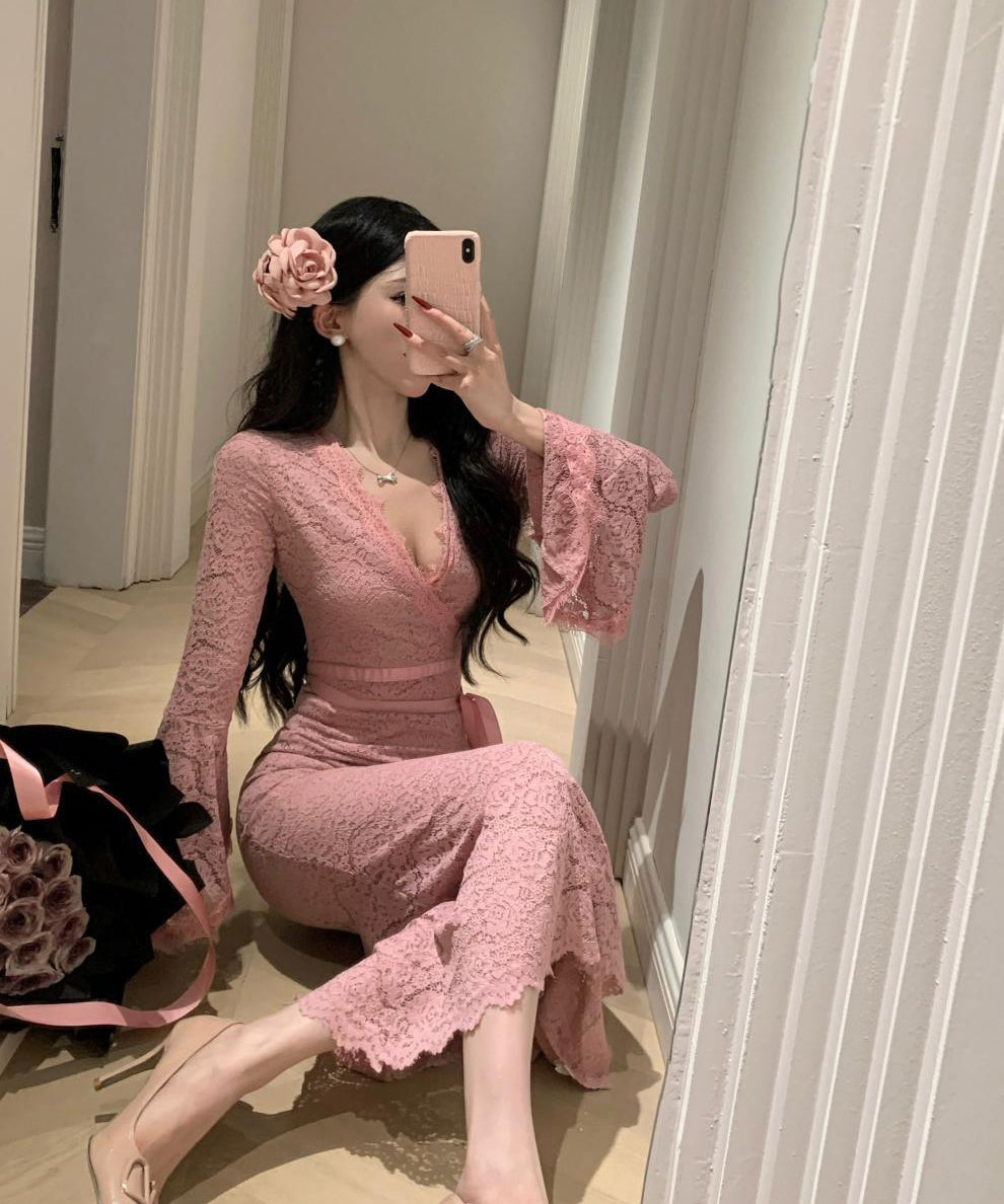 【3色】ロングドレス レース キャバドレス 谷間見せ セクシー 気質 エレガント 指名 XH2-ZED888568XH238A