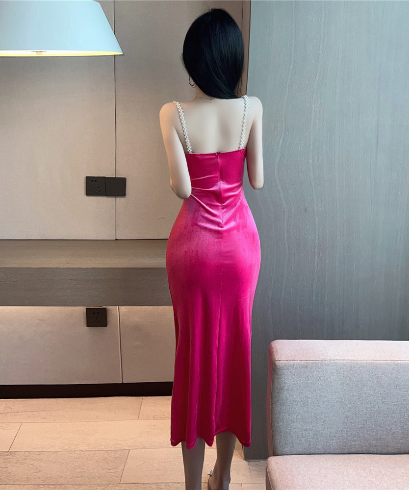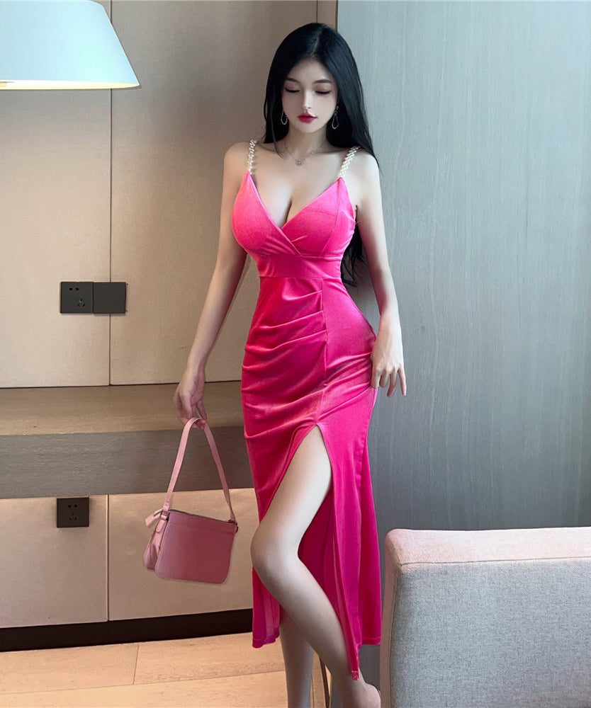 【3色】ロングドレス Vネック 谷間魅せ 指名 真珠 美足効果 XH2-DD5080