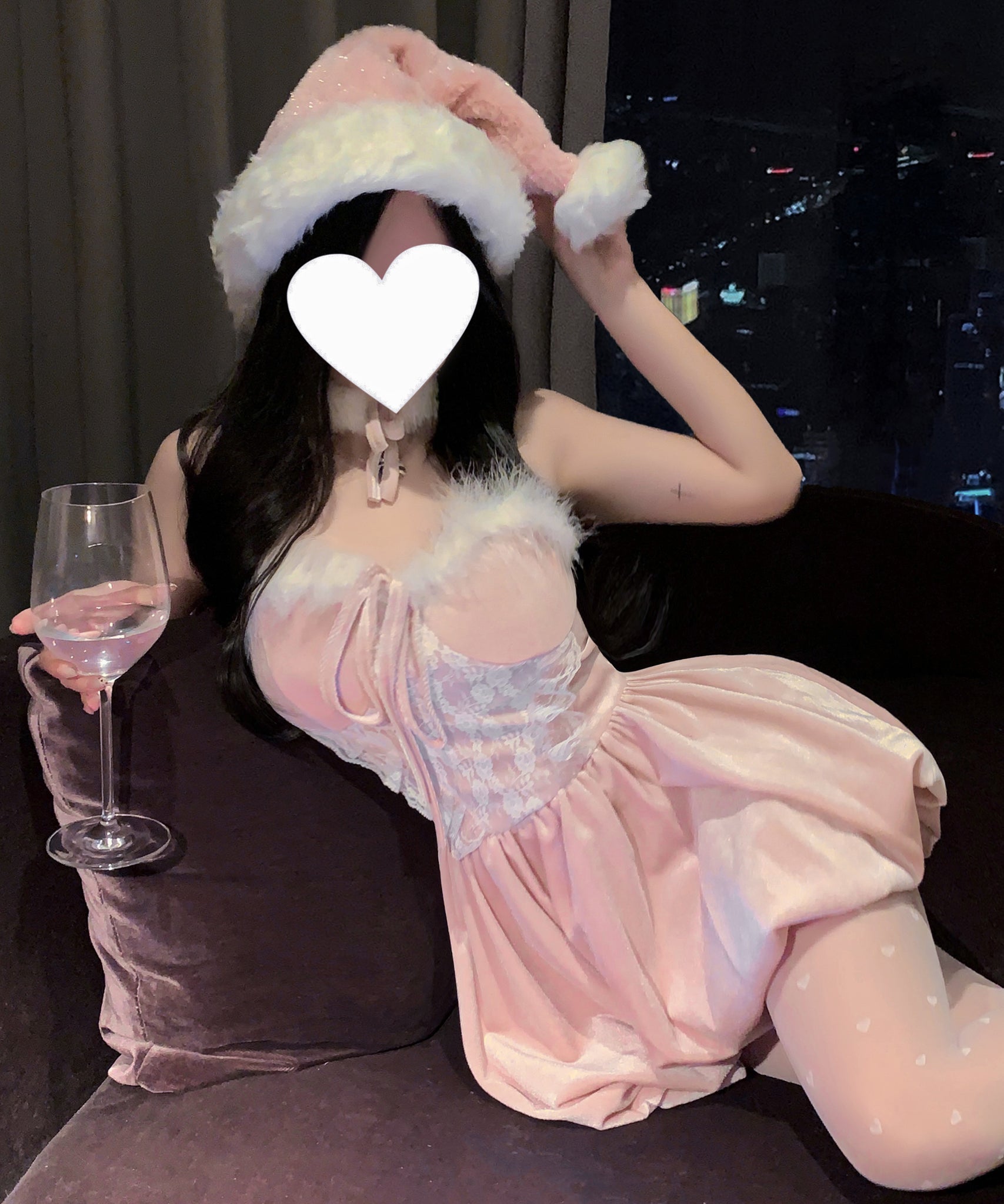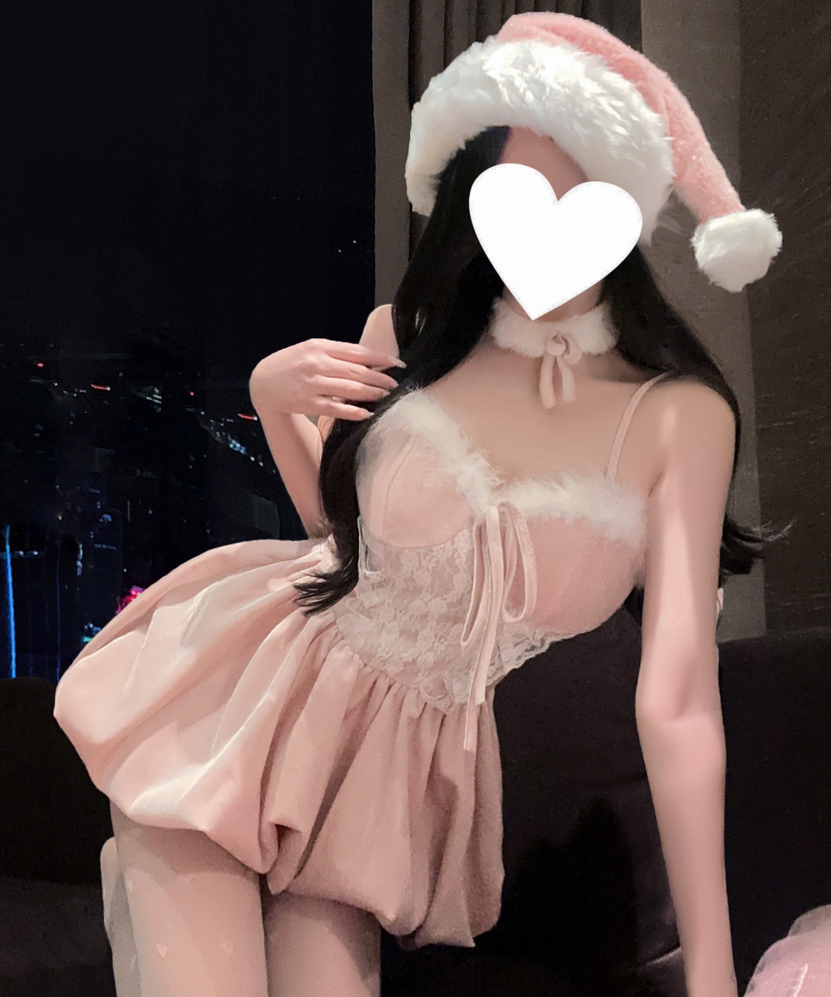 【4点セット】クリスマス 大人可愛い セクシー キャミワンピ フレアワンピ ファーデザイン レース JC2-DML40