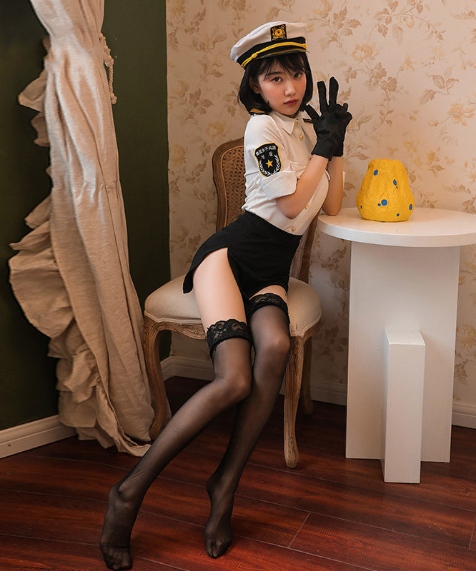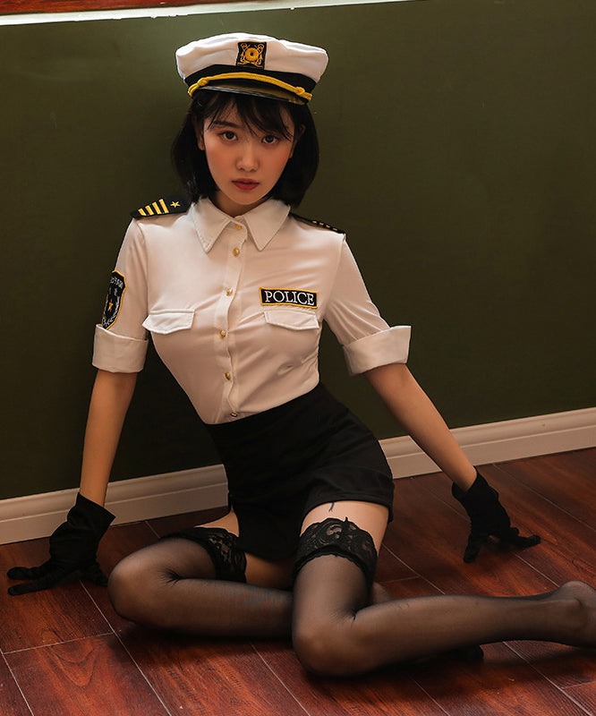 【4点セット】帽子付き体型カバープチプラセクシーミニポリス(トップス/スカート/帽子/手袋)XH2-RM3505