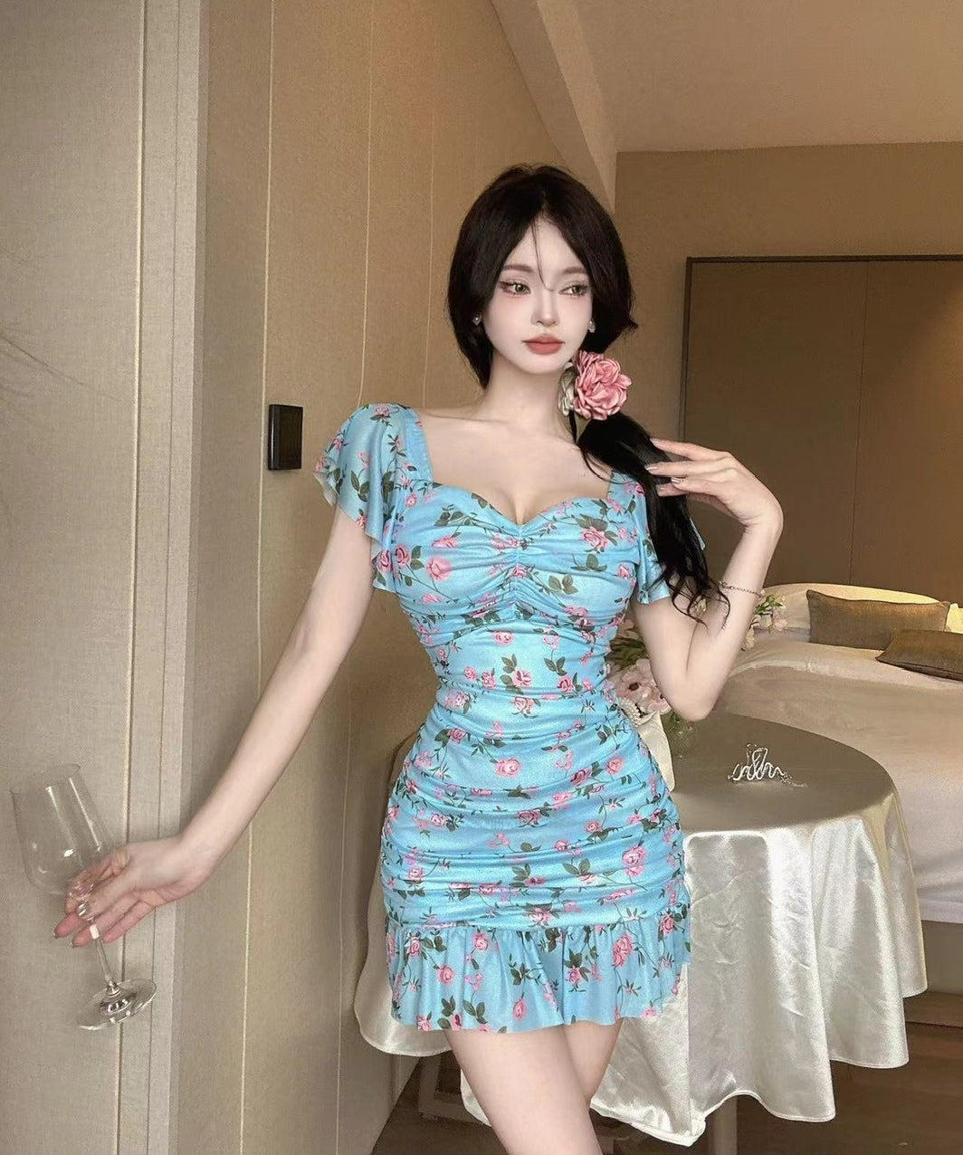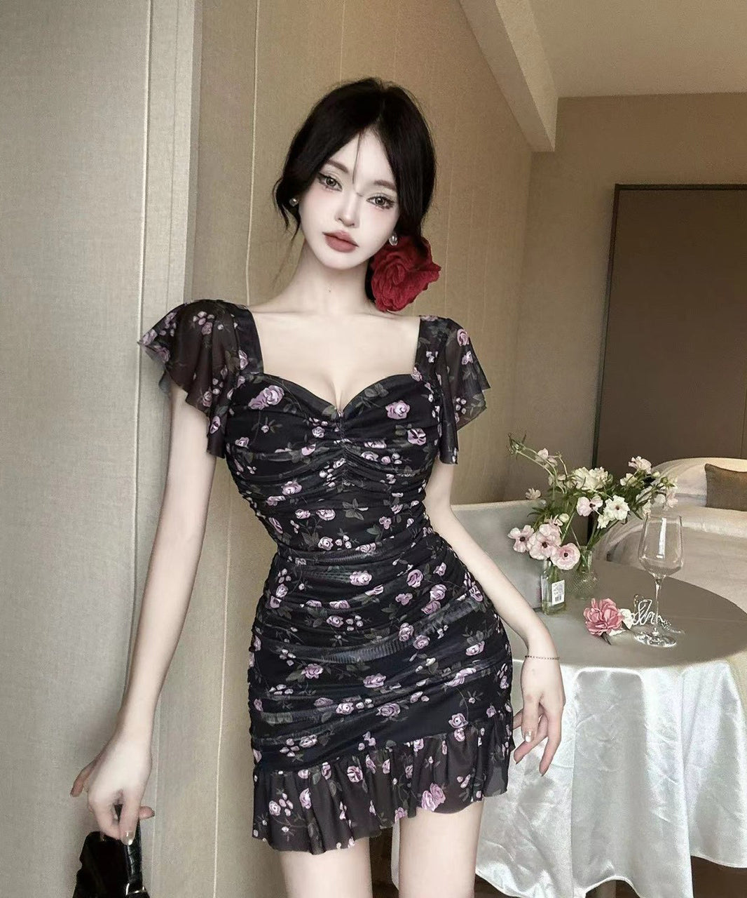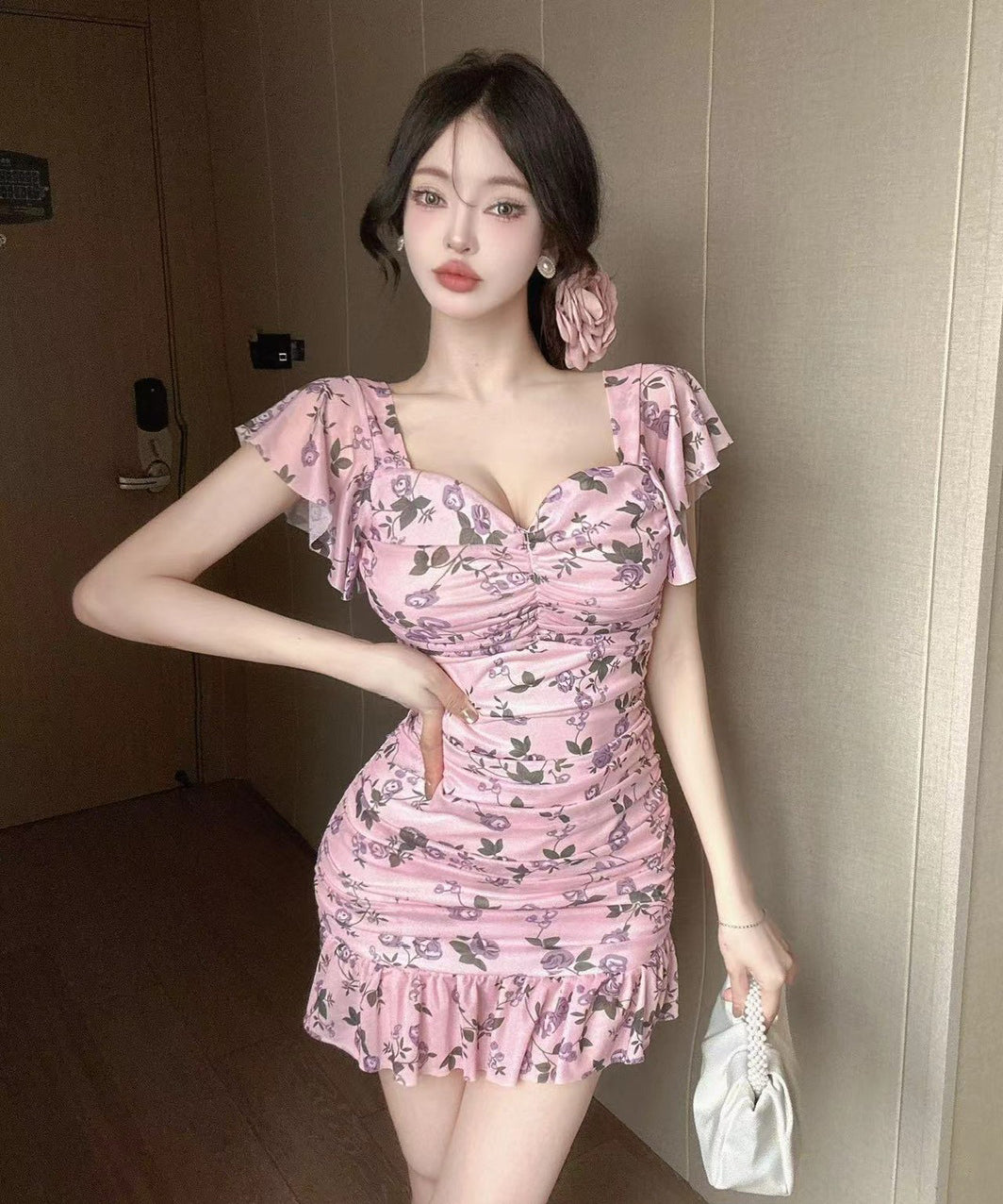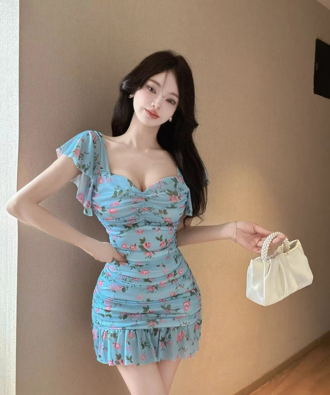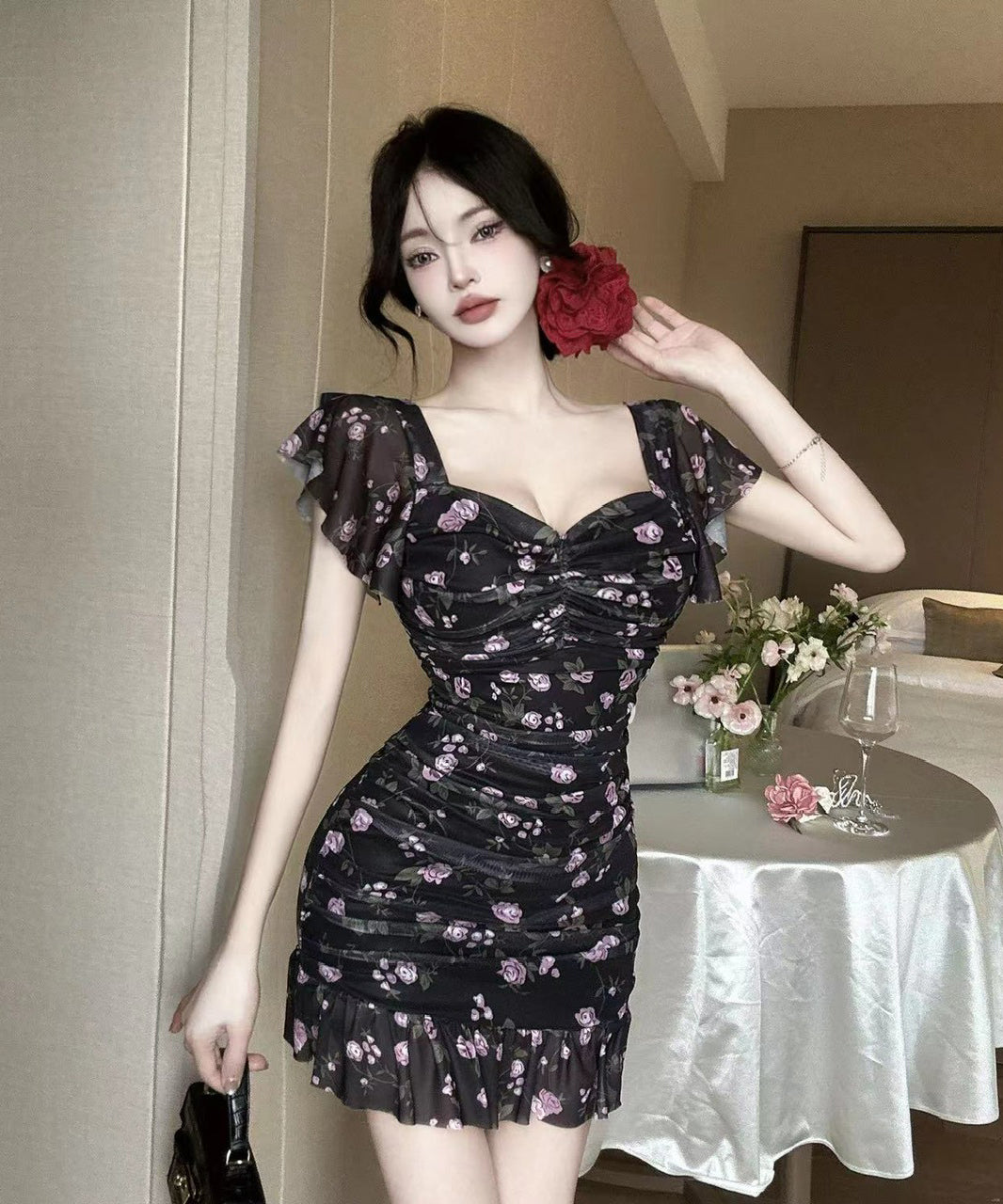 【4色】キャバドレス ミニドレス 花柄 タイトドレス セクシー 谷間見せ おしゃれ YH2-DD6348