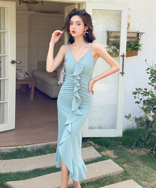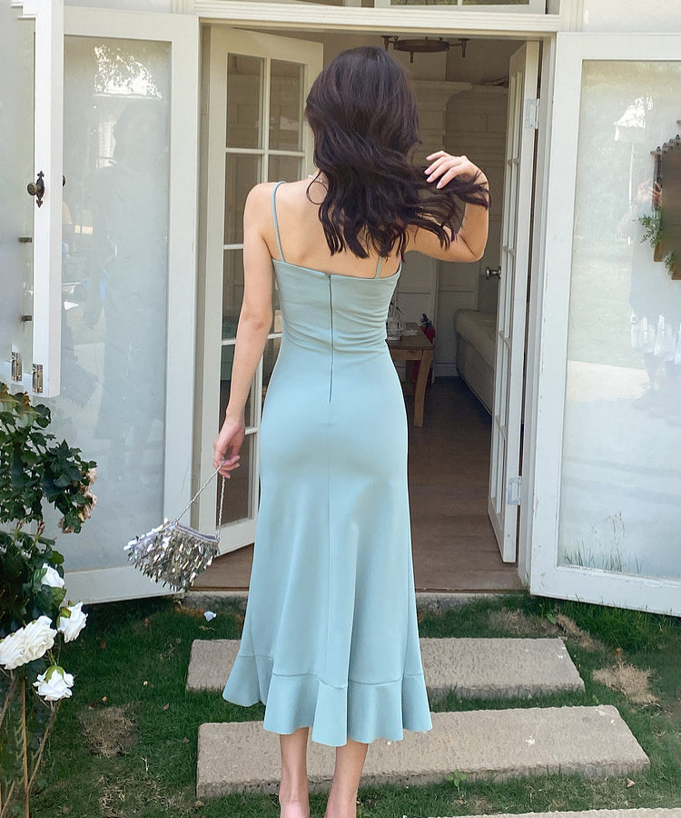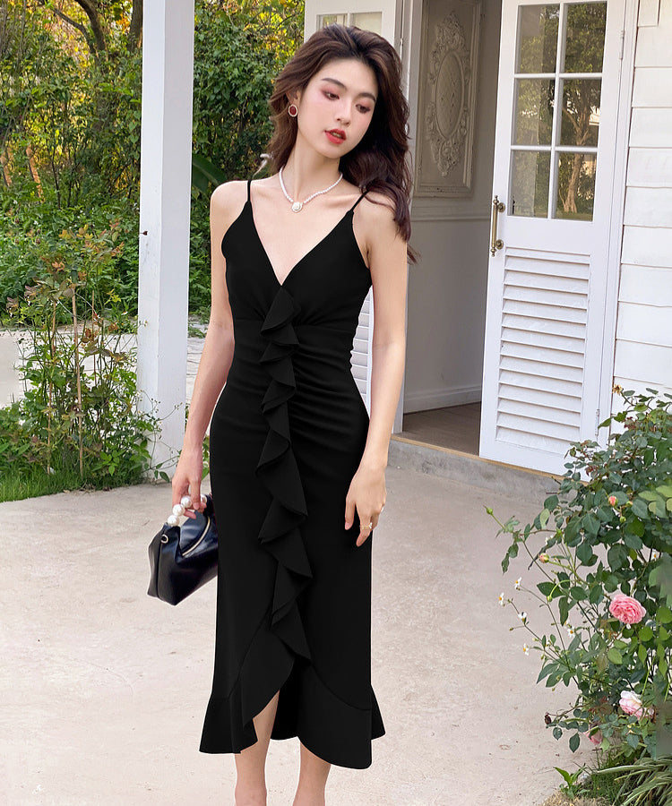 【4色】キャバドレス ロングドレス セクシー フリルタイトドレス 指名 谷間魅せ XH2-ZED889588GT347