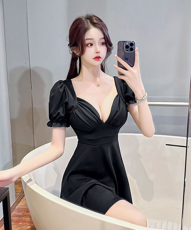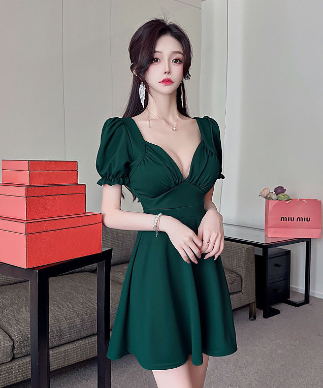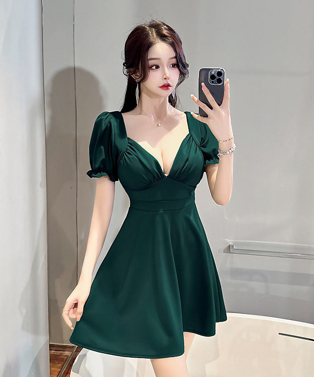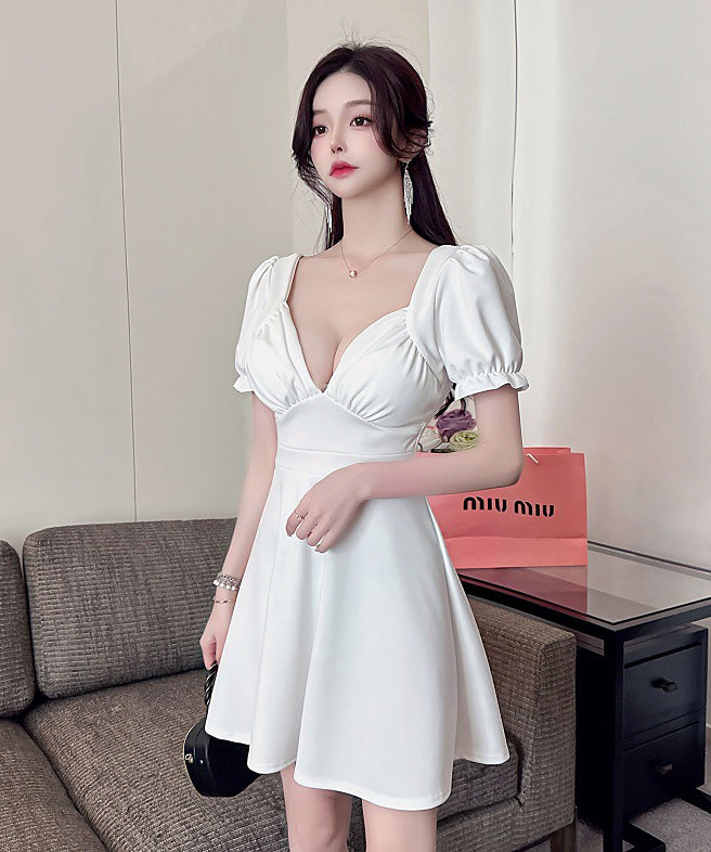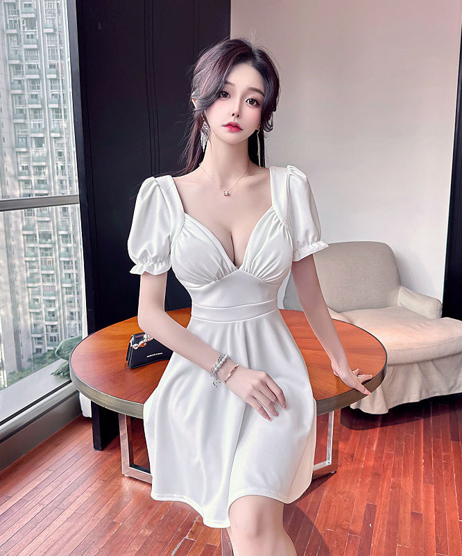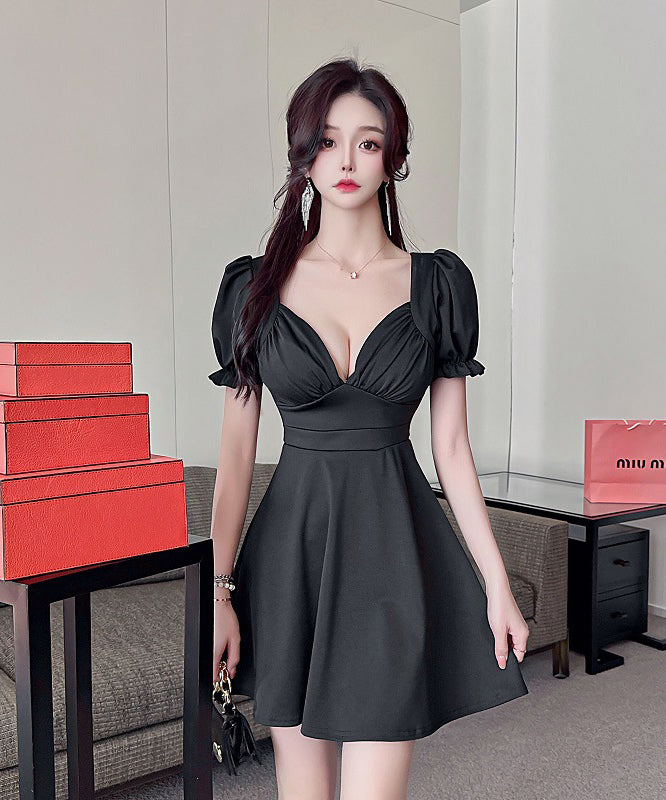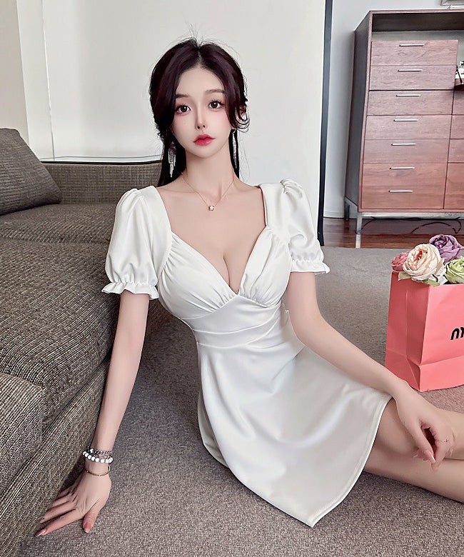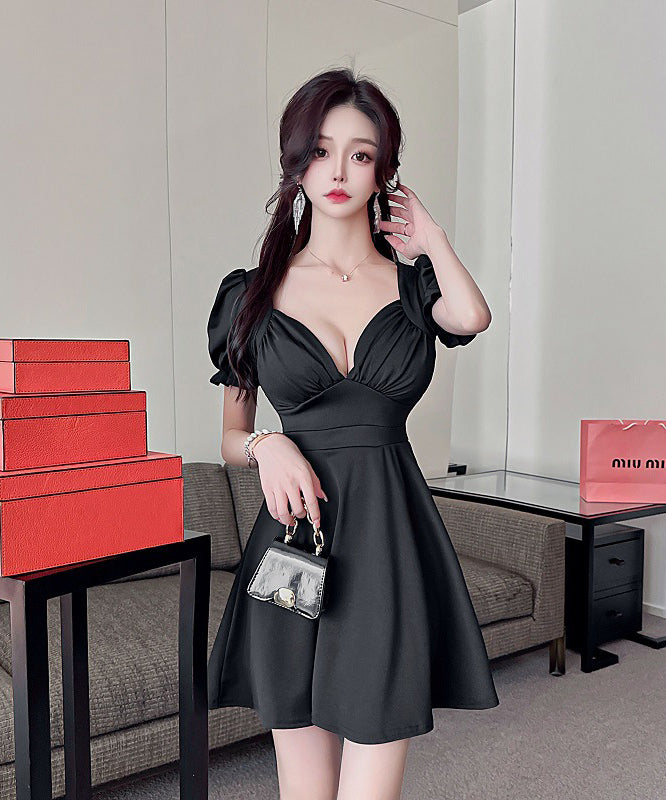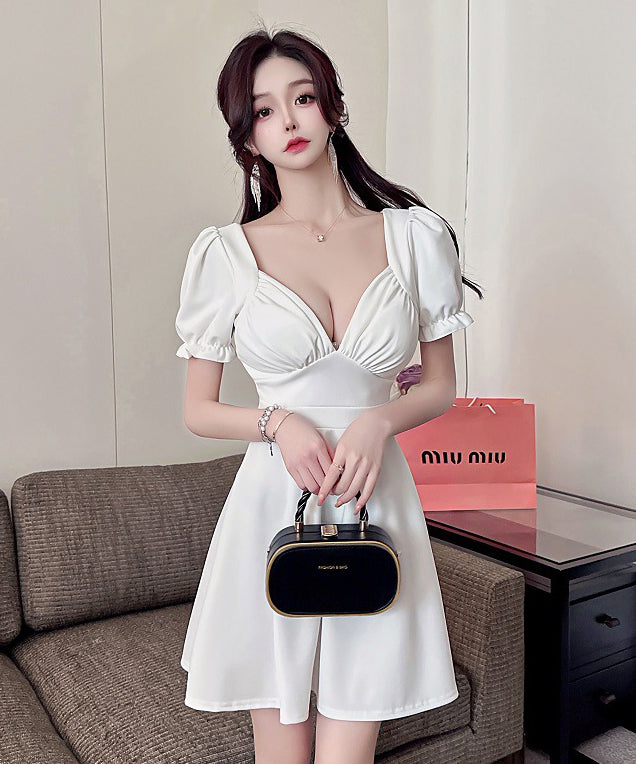 【4色】ミニドレス キャバドレス かわいい Vネック 体型カバー 着瘦せ MY2-EMK2311