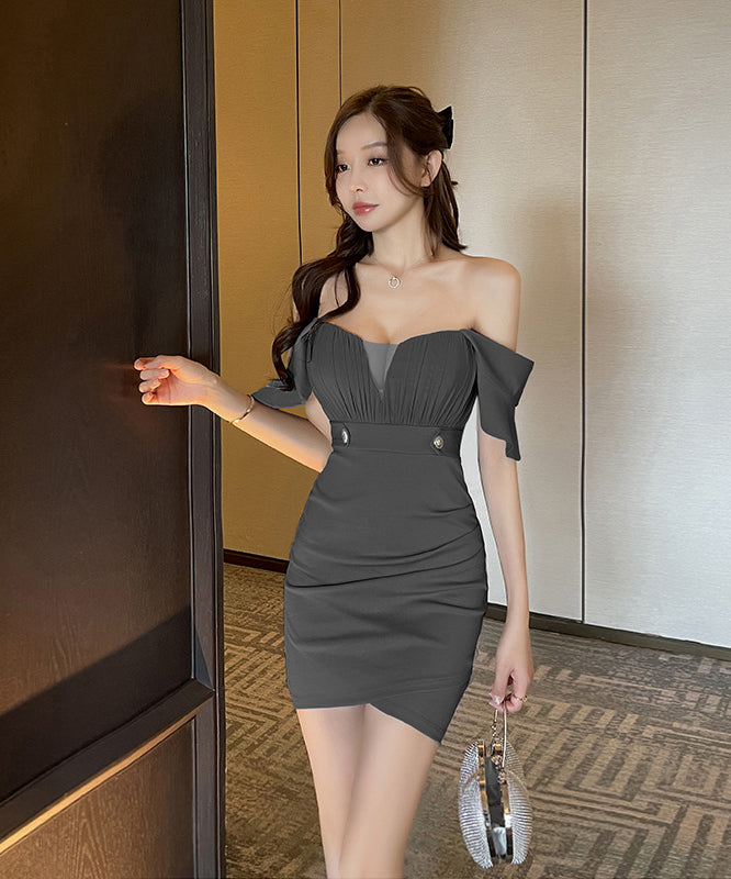 【4色】ミニドレス キャバドレス セクシー 非対称 フリル hot girl 谷間見せ キャバクラ XH2-YM8807