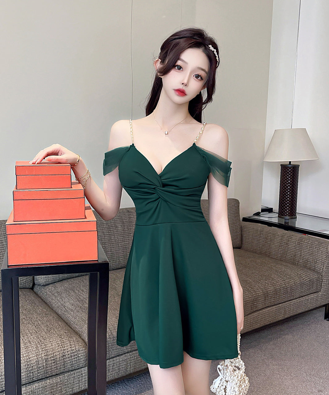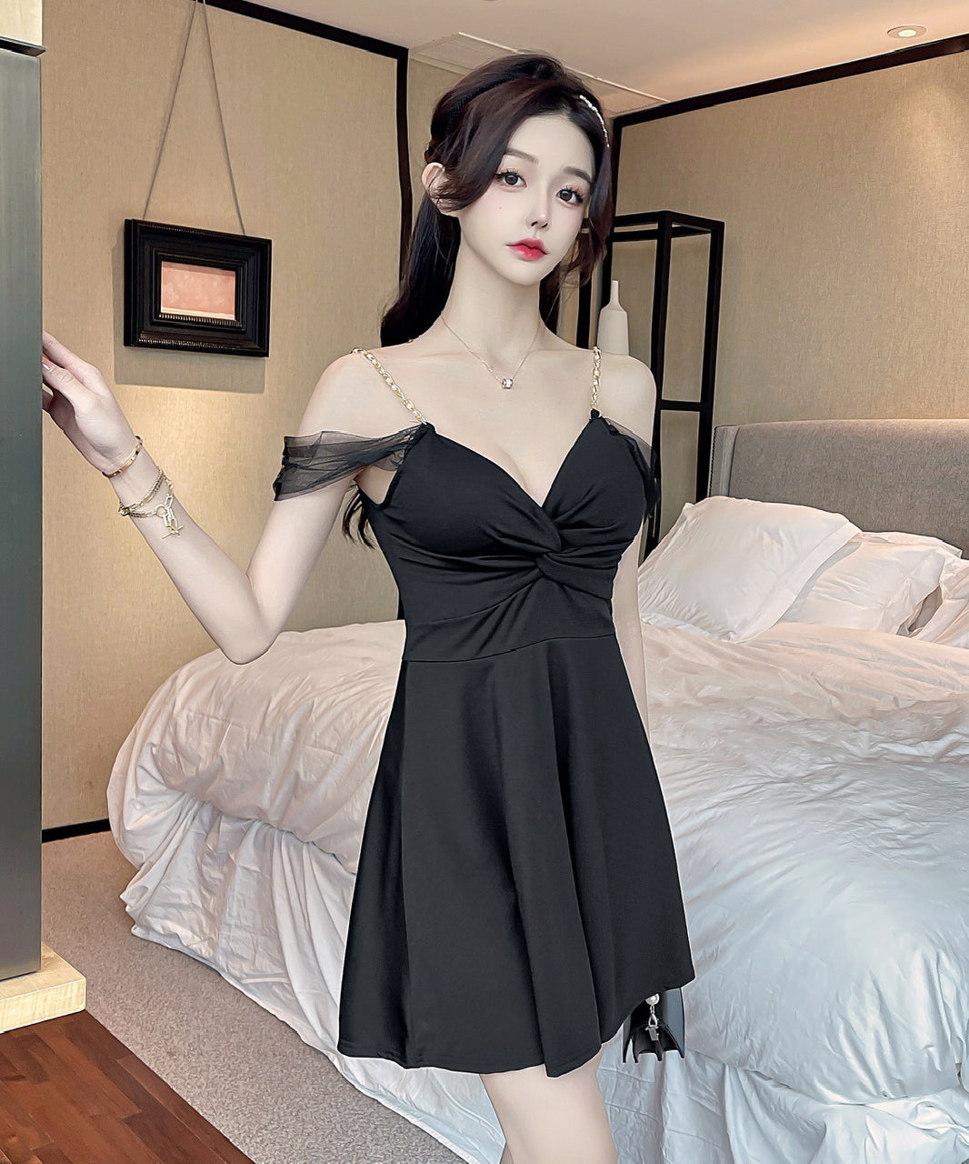 【4色】ミニドレス セクシー キャバドレス Aライン 谷間魅せ 指名 ナイトクラブ XH2-DD4460