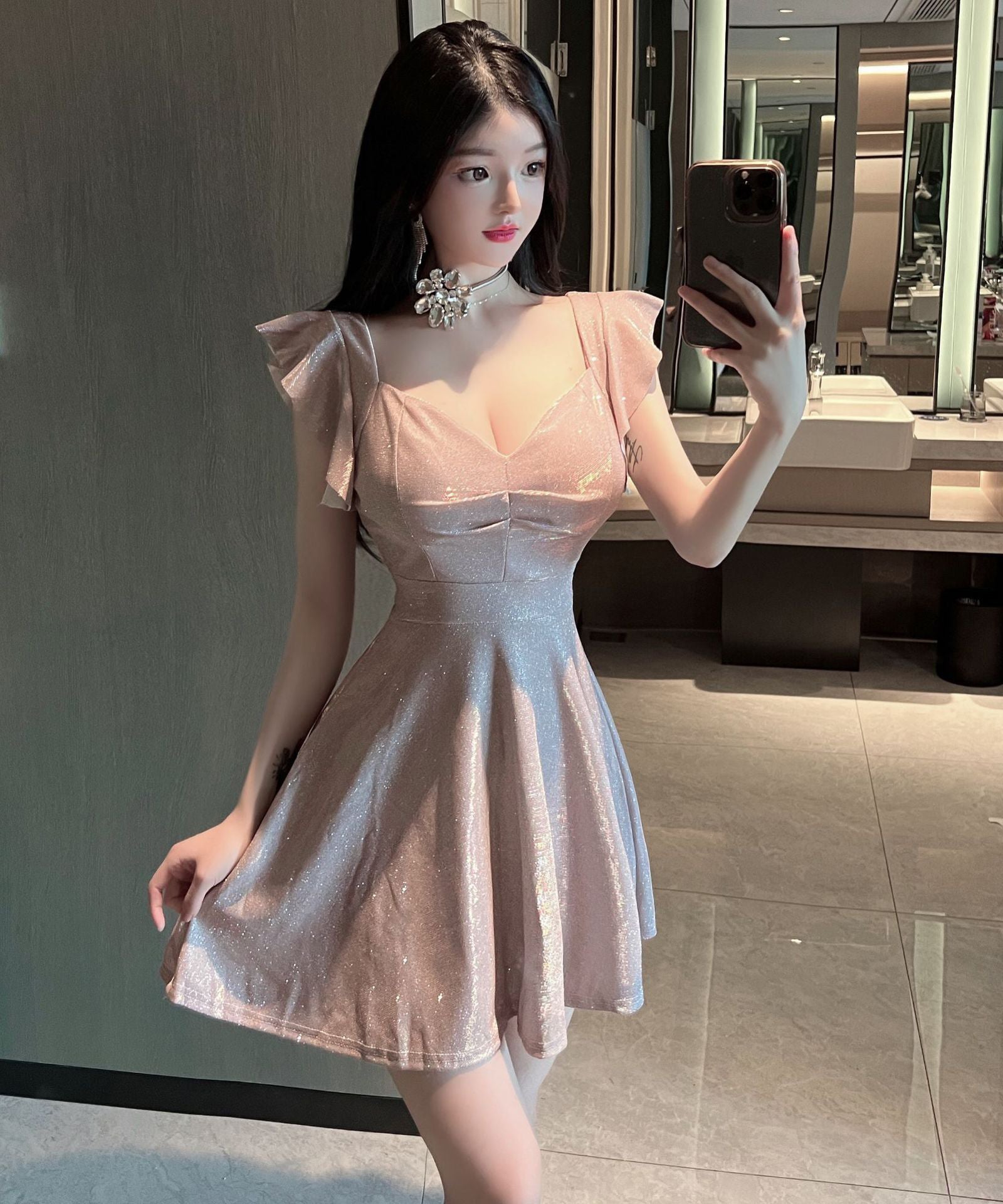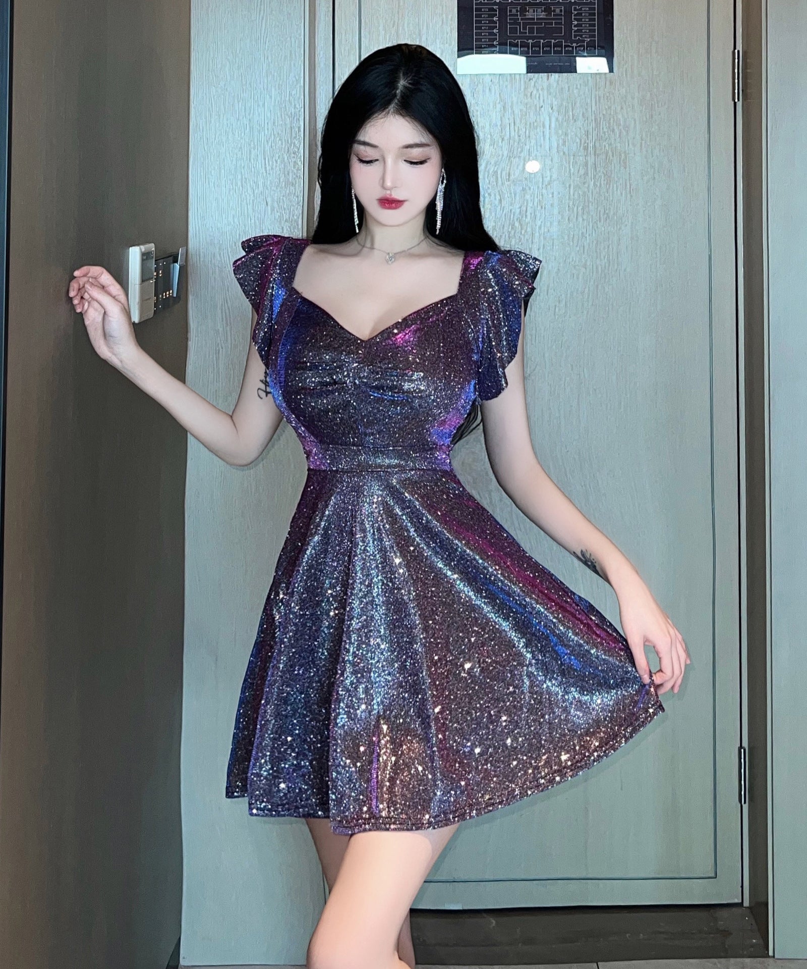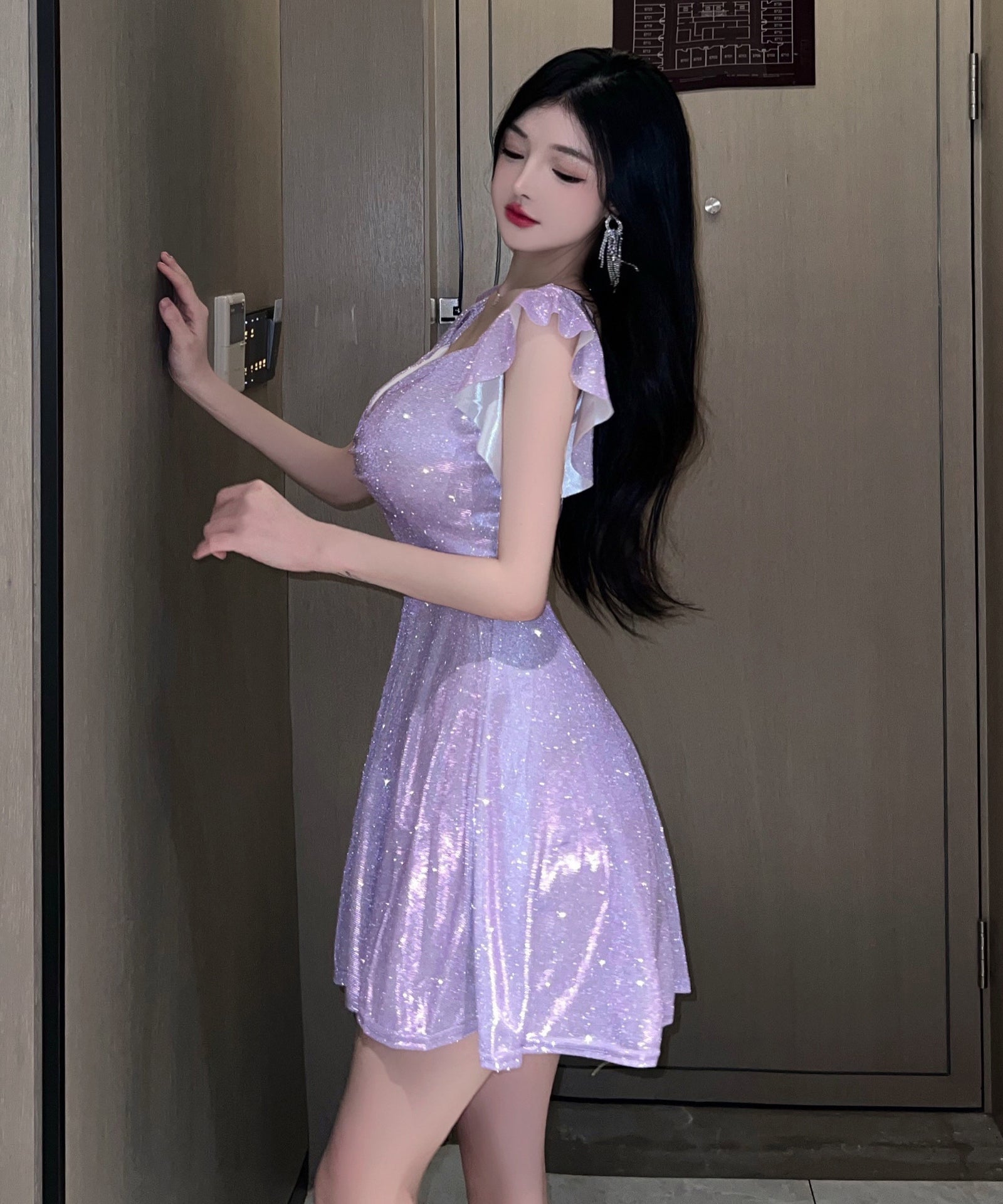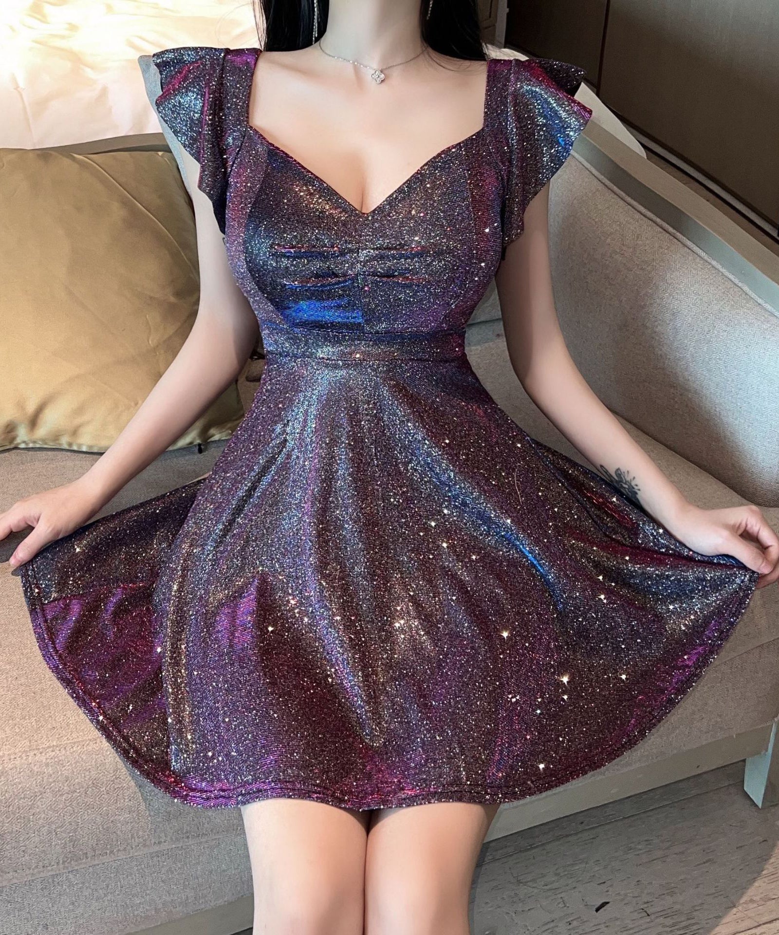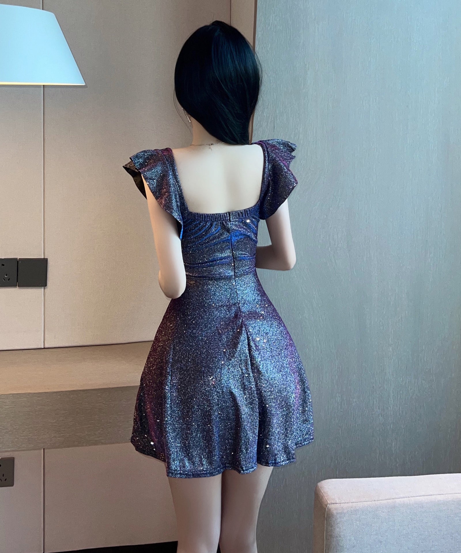 【4色】ミニドレス セクシー フリル キラキラ Aライン Party ナイトクラブ XH2-DD4611