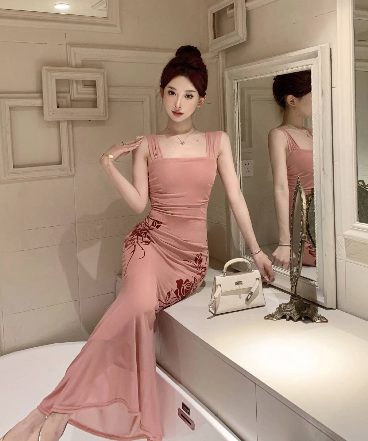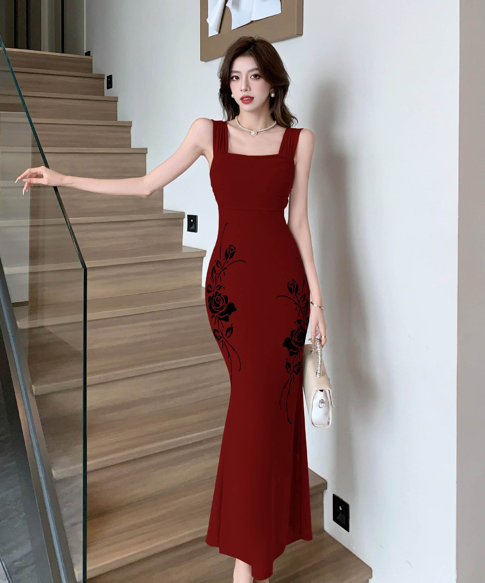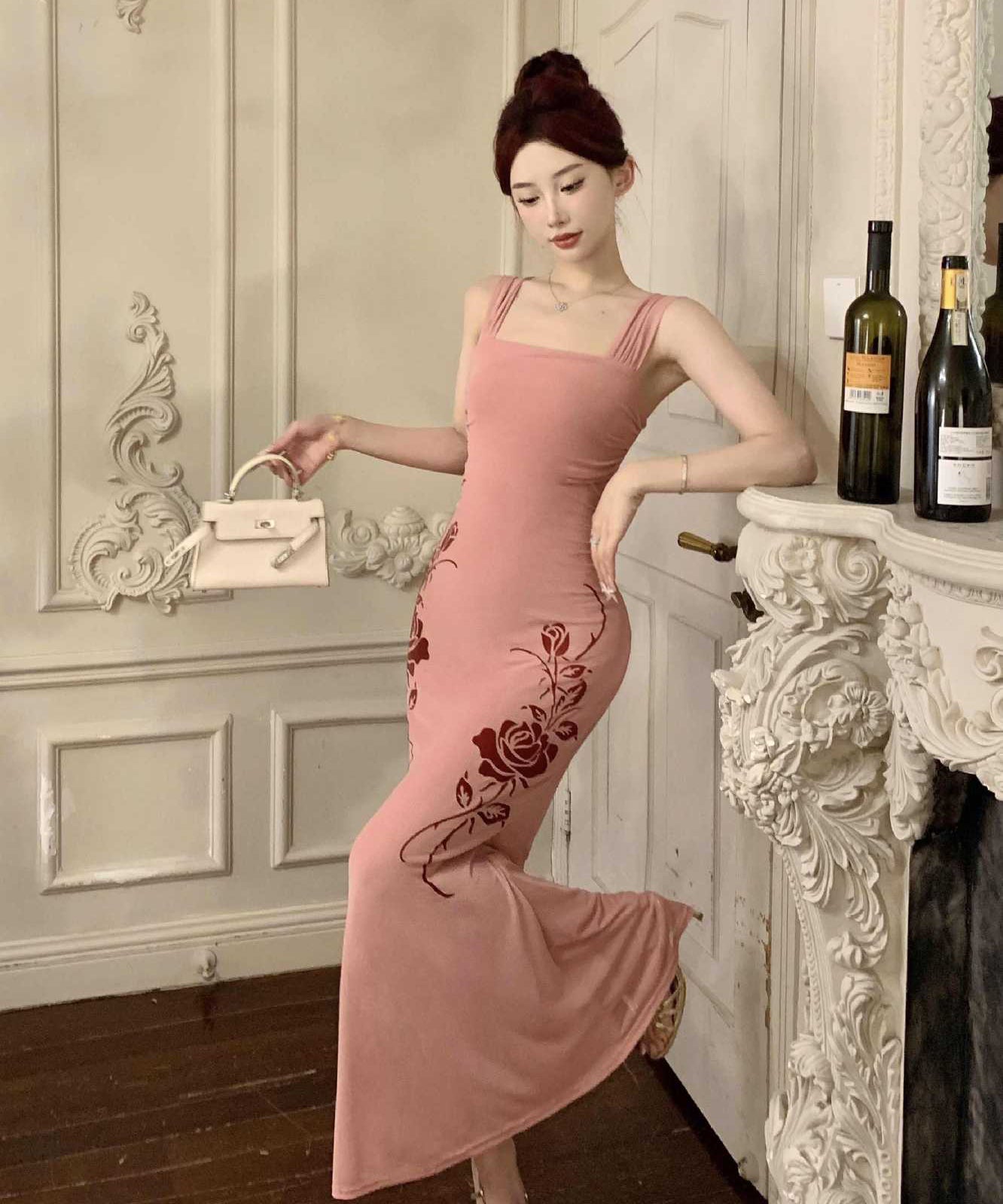 【4色】ミニドレス 気質 ロングドレス バラ柄 セクシー エレガント おしゃれ YH2-DD6644