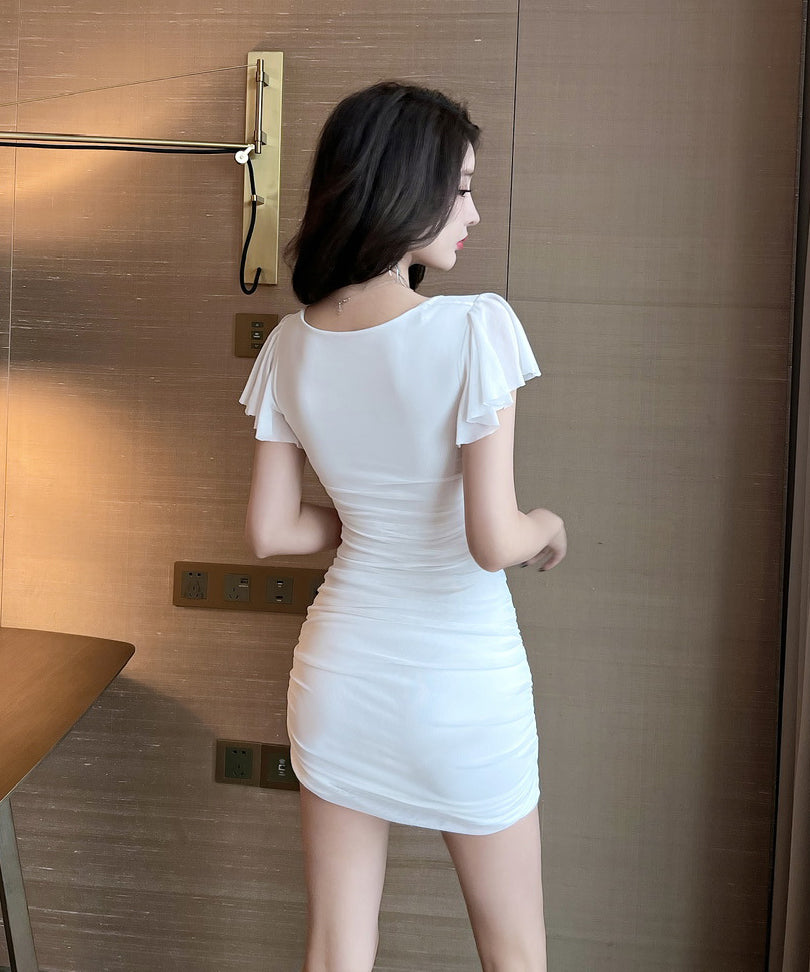 【4色】ミニドレス 秋新作 セクシー タイトドレス 谷間魅せ おしゃ 着瘦せ XH2-DD4575