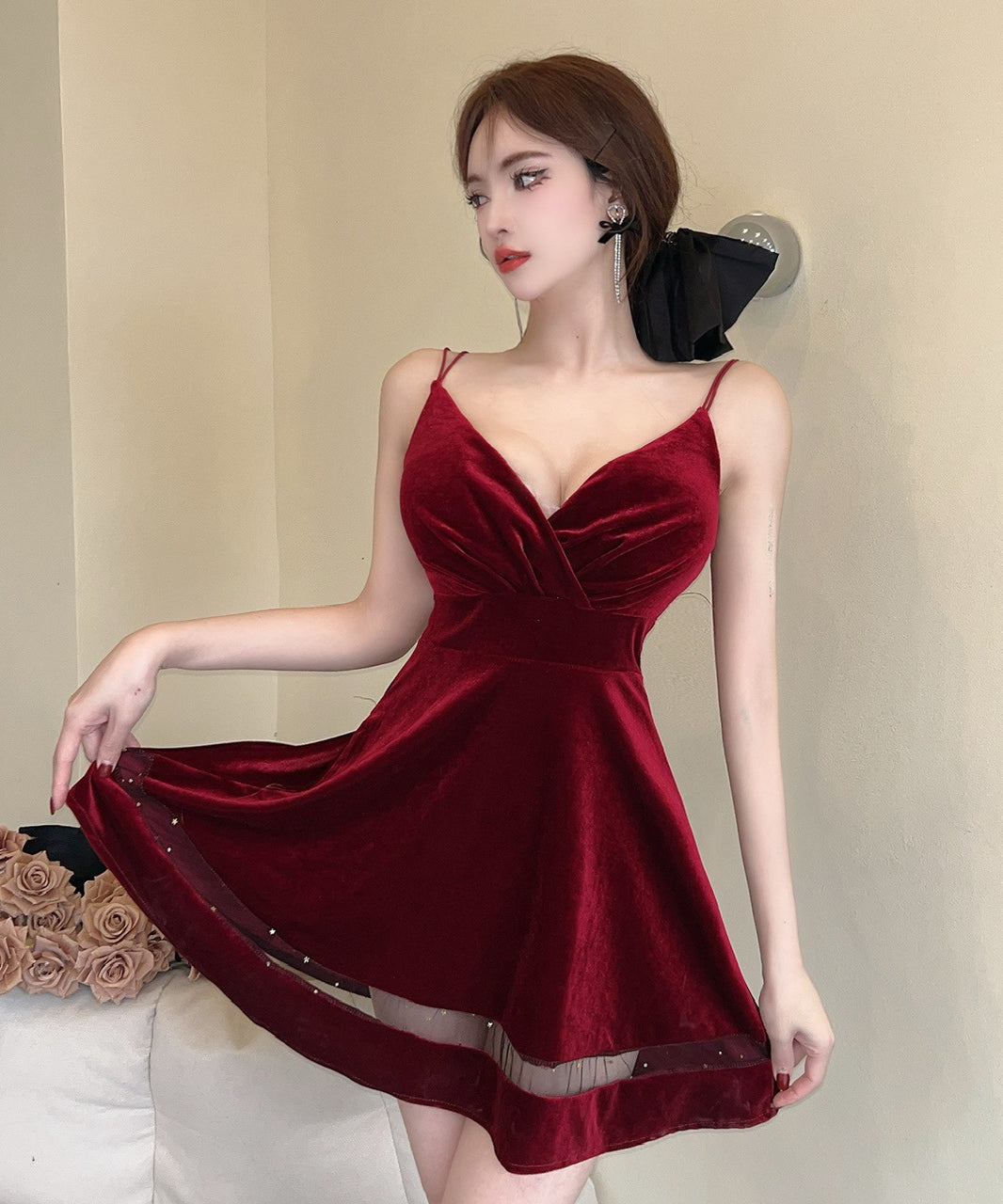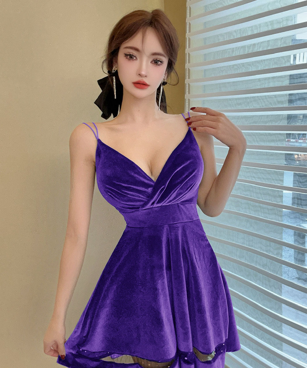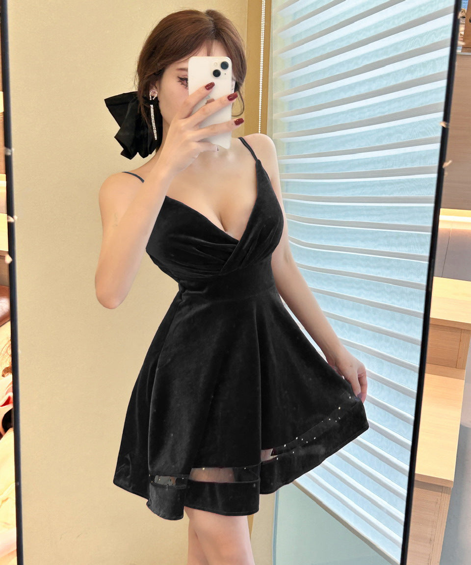 【4色】ミニドレス Aライン Vネック 谷間見せ セクシー ナイトクラブ XH2-DD5852