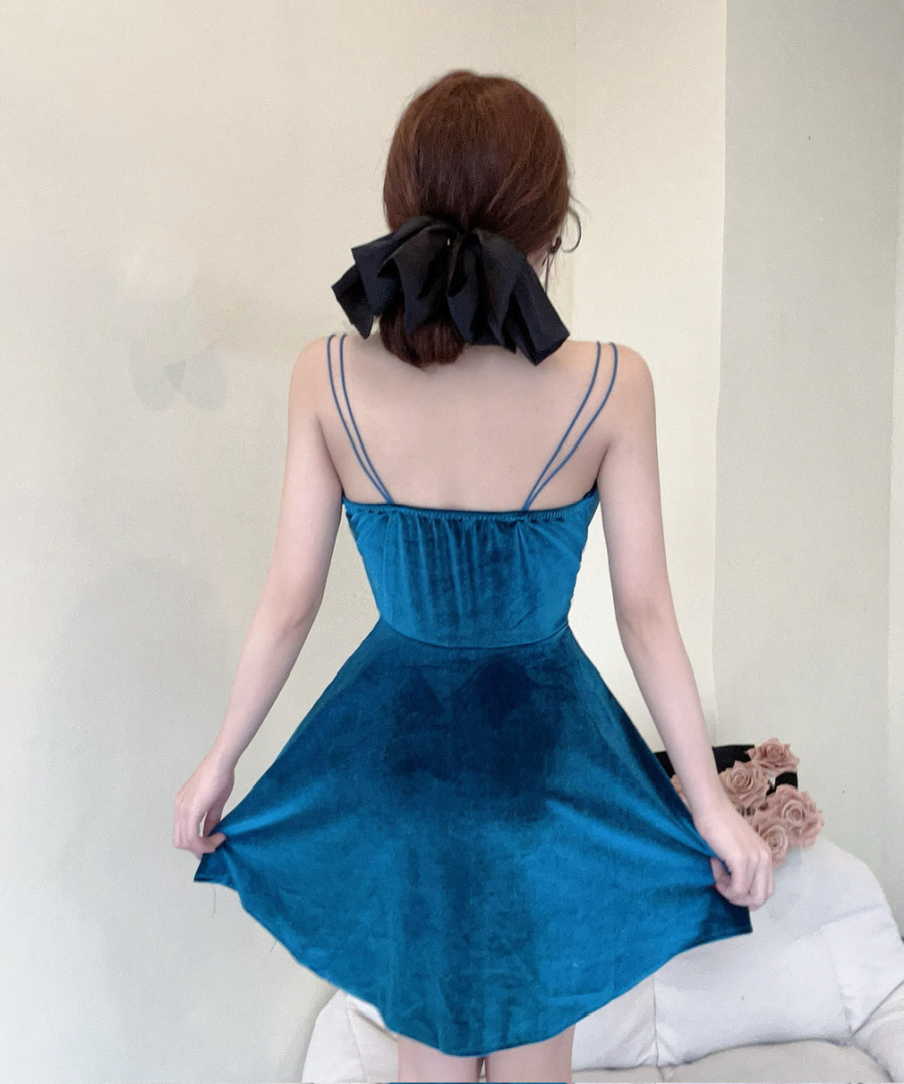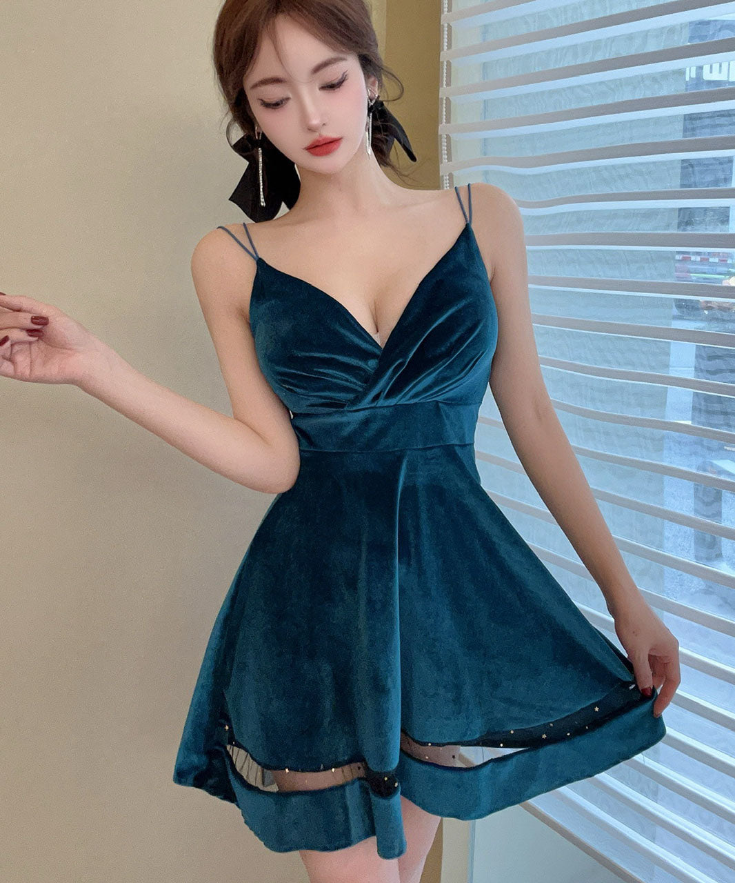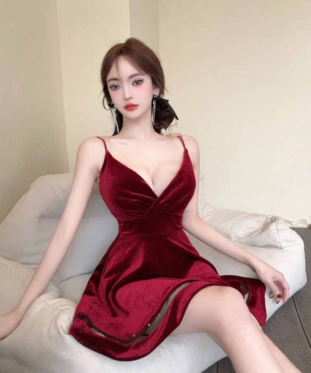 【4色】ミニドレス Aライン Vネック 谷間見せ セクシー ナイトクラブ XH2-DD5852