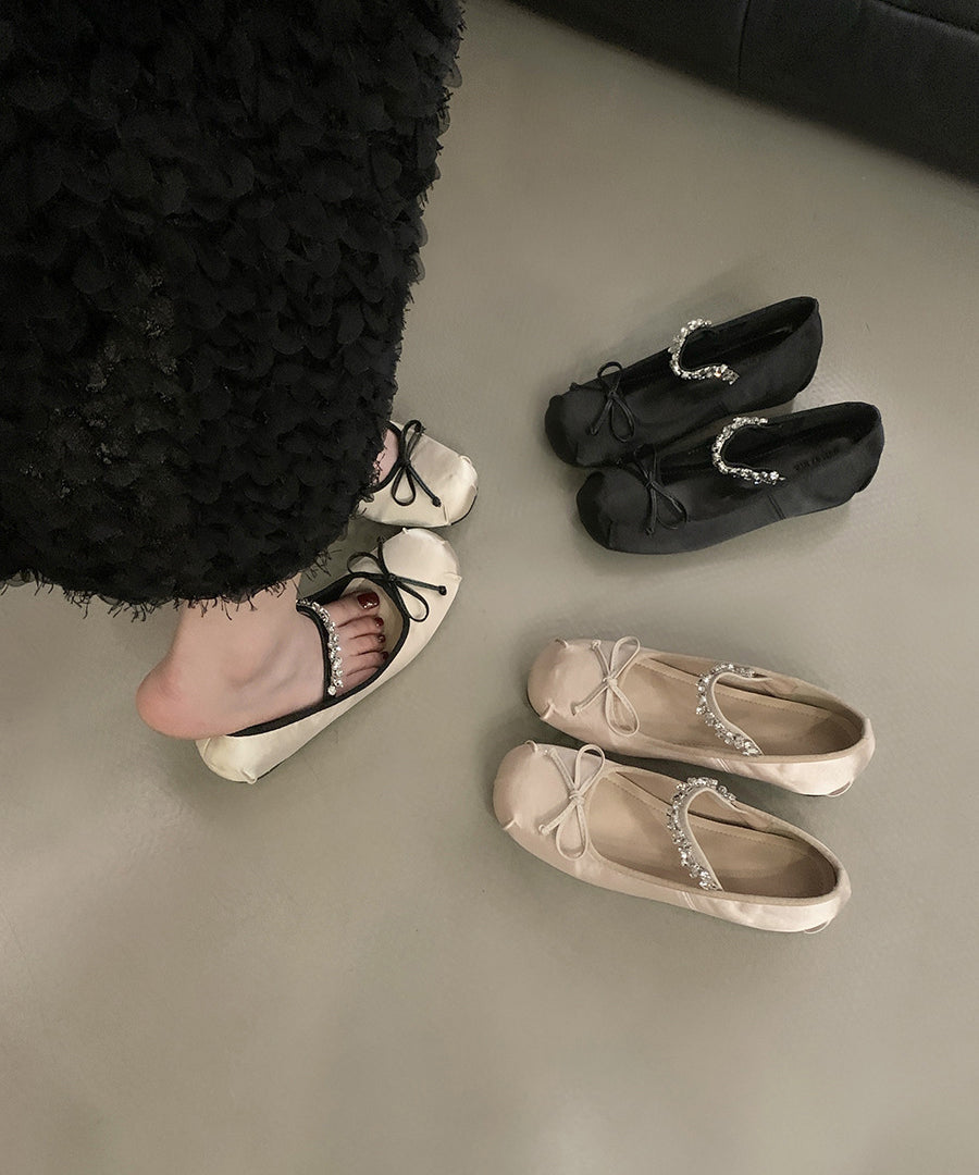 4色 ラウンドトゥ バレエシューズ バレエコア レディース リボン パンプス 痛くない キラキラ フラットシューズ バレエパンプス フラットパンプス ぺたんこ バレエ XH5-TZSS-CC6