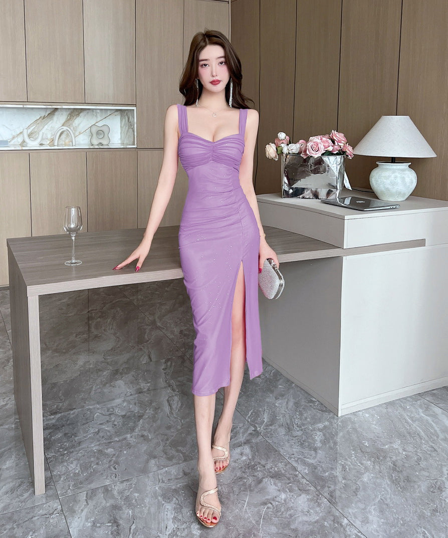 【4色】膝丈ドレス キャバドレス ベアトップ セクシー キラキラ 谷間露出 YH2-DD6694