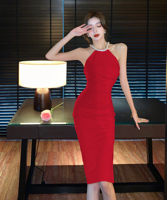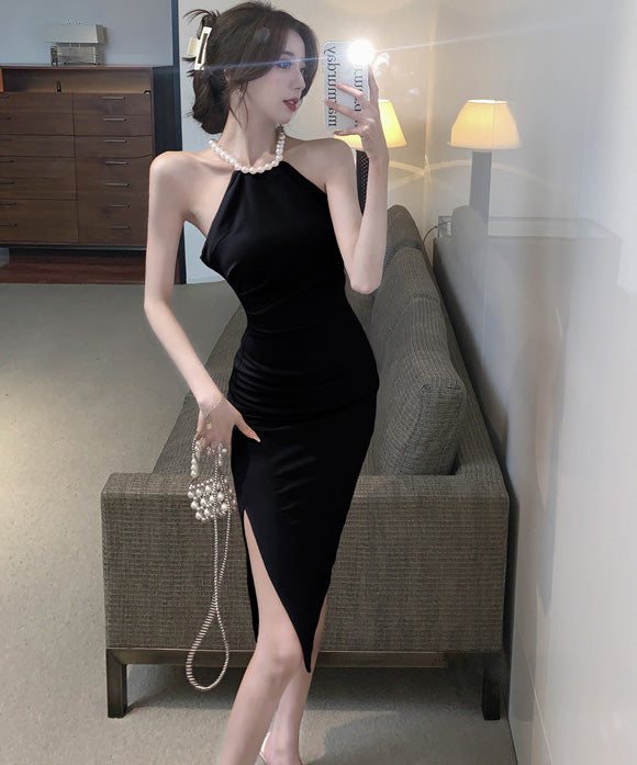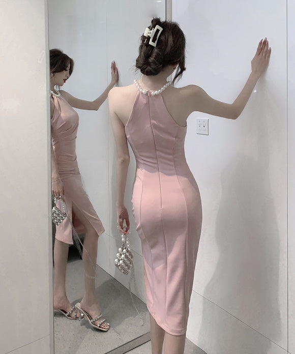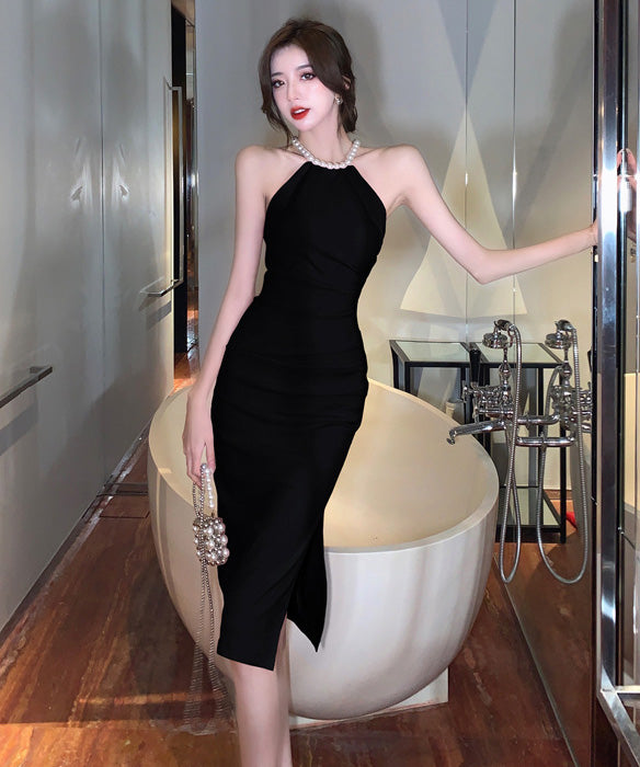 【4色】膝丈ドレス キャバドレス 着痩せ セクシー ホルターネック YH2-ZED889353GT510