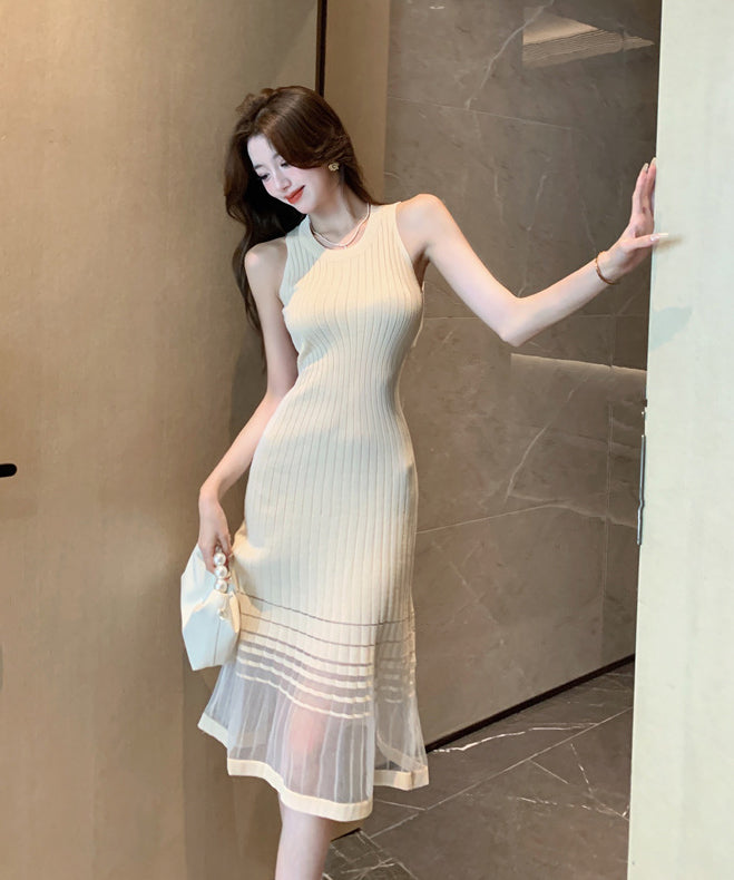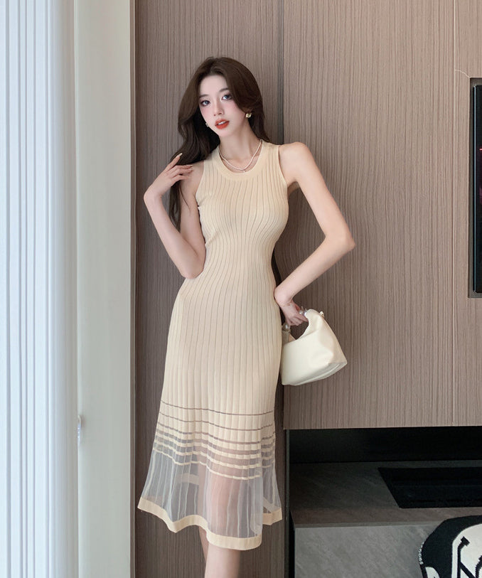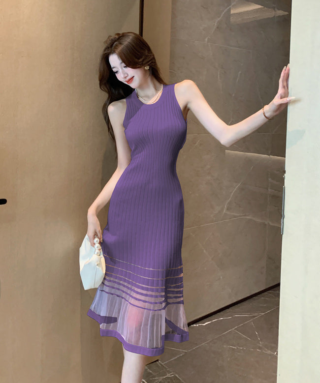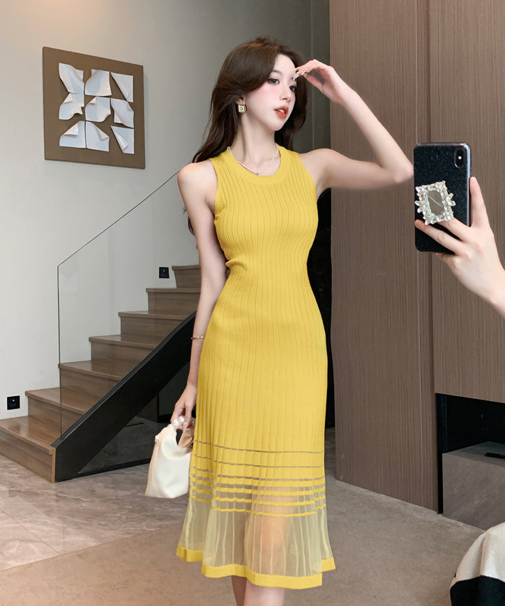 【4色】膝丈ドレス 体型カバー ニット セクシー オフショルダー 通勤 YH2-ZED886389GT510