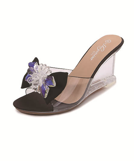 4色 透明 ピカピカ スリッパ リボン 脚長効果 透明感 ハイヒール WQ5-JJMX1098-115
