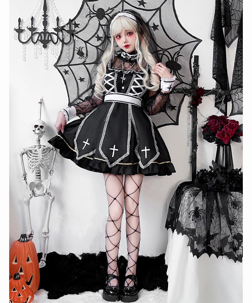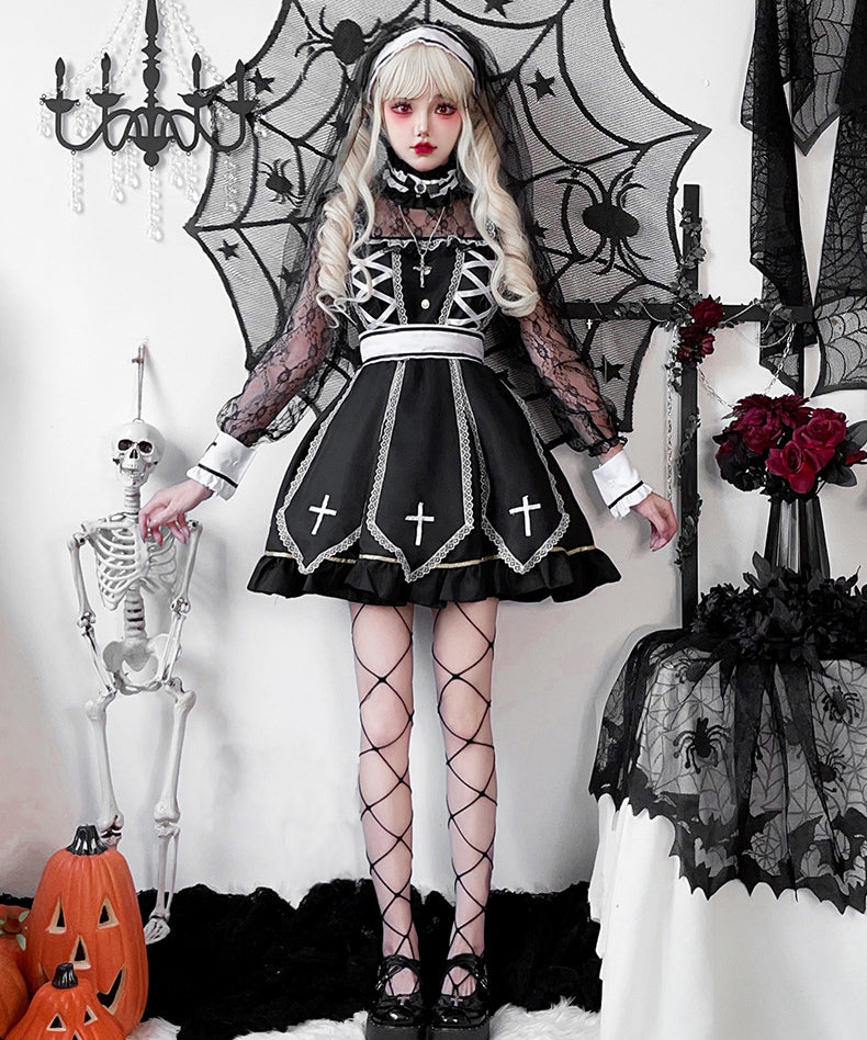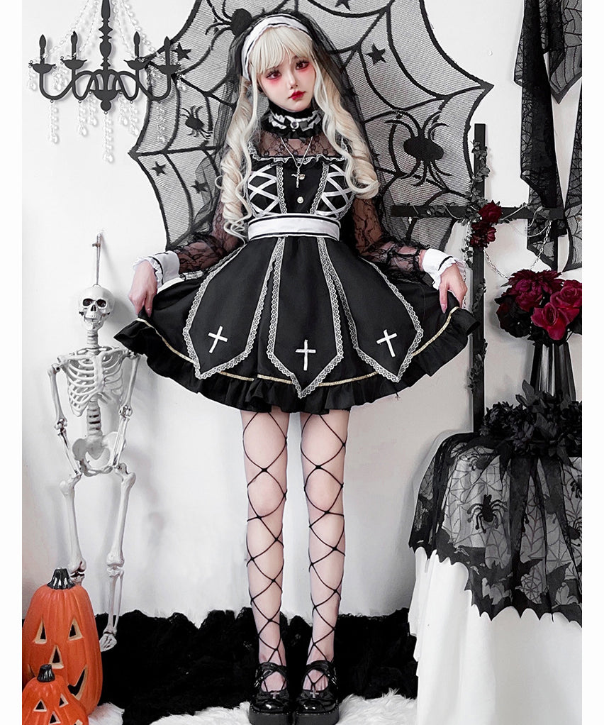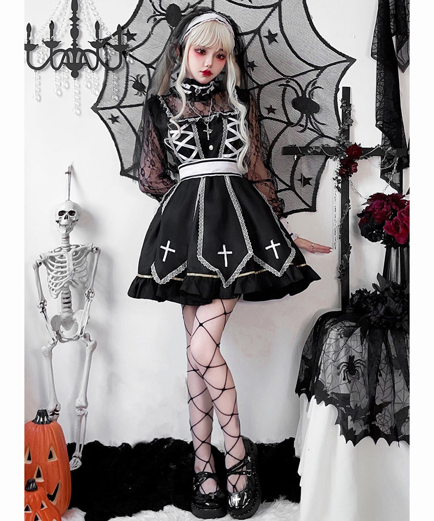【5点セット】 コスプレ ハロウィン ゴシック シスターコス ゴシック ゴーストドレス 神コス 仮装パーティー JC2-XJJ211