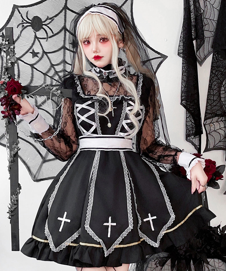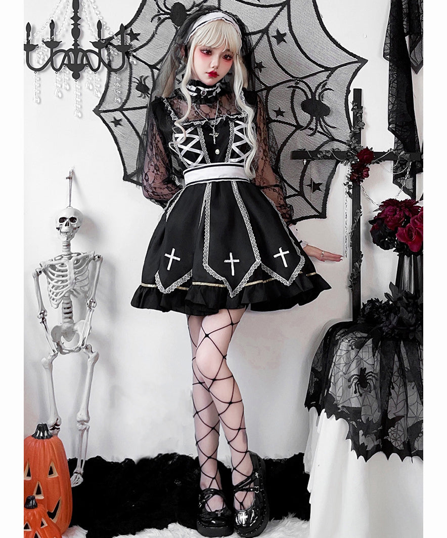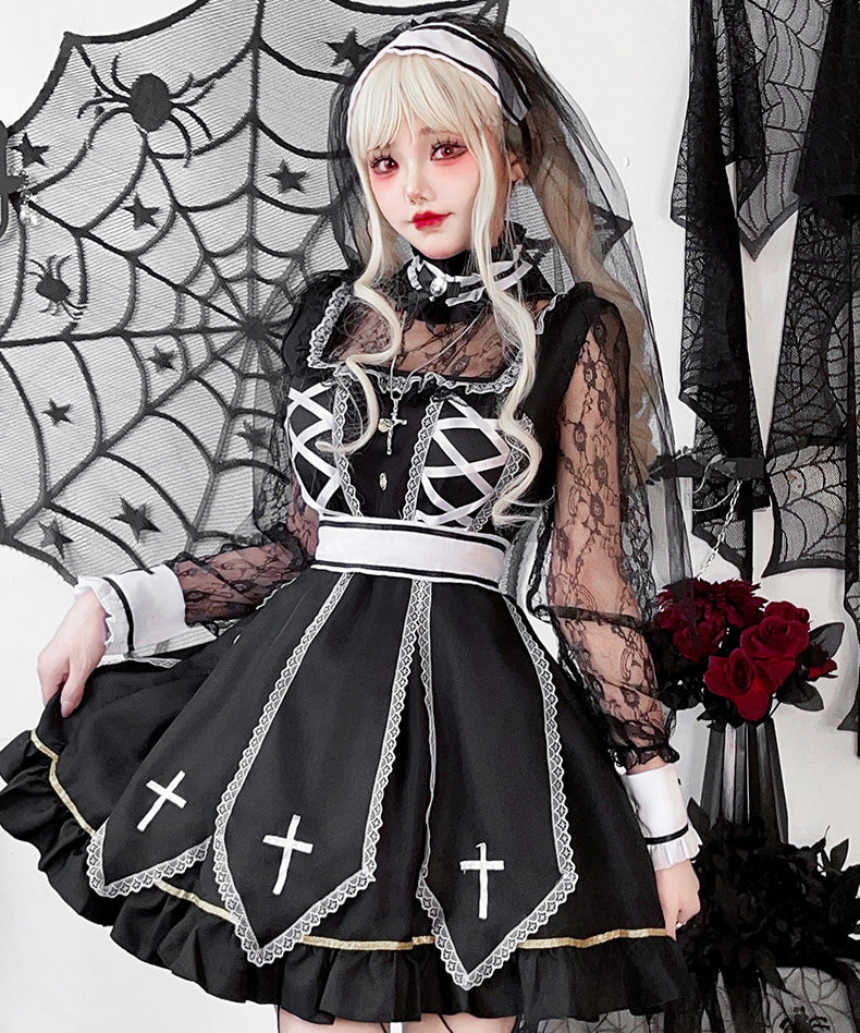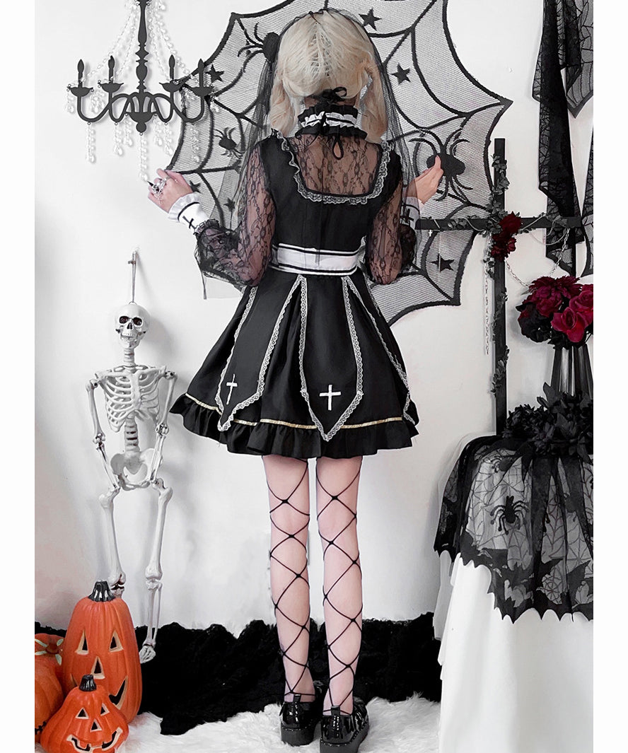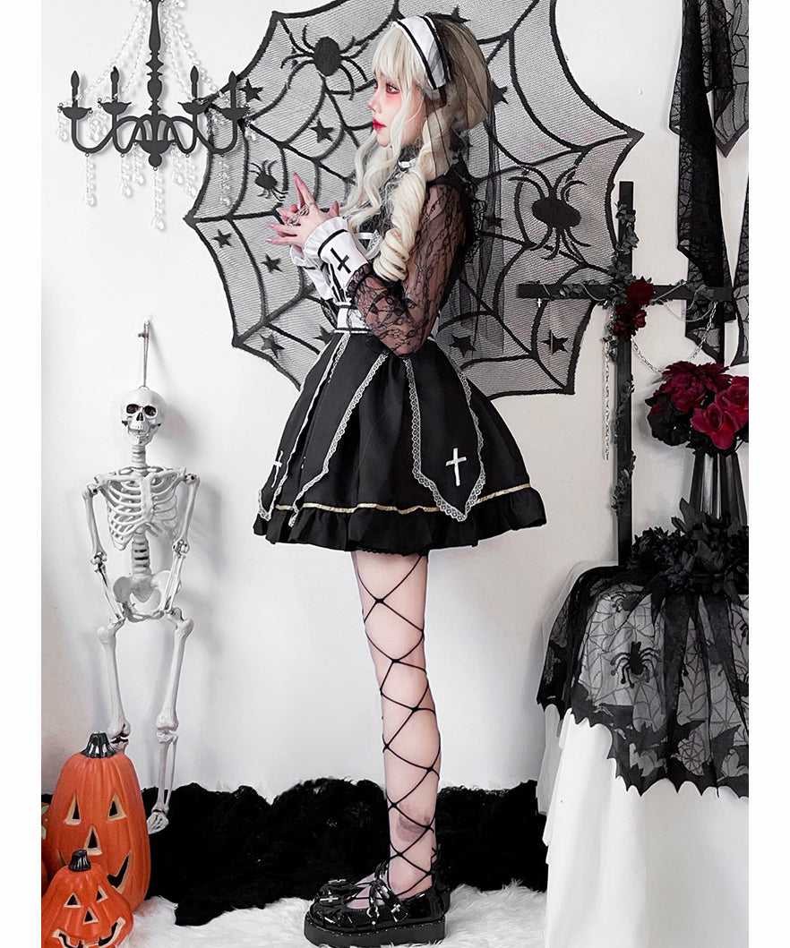 【5点セット】 コスプレ ハロウィン ゴシック シスターコス ゴシック ゴーストドレス 神コス 仮装パーティー JC2-XJJ211