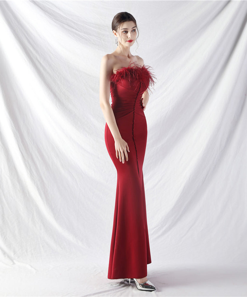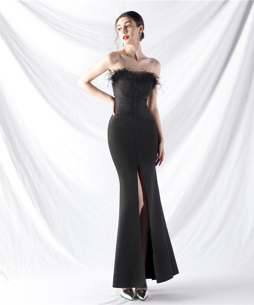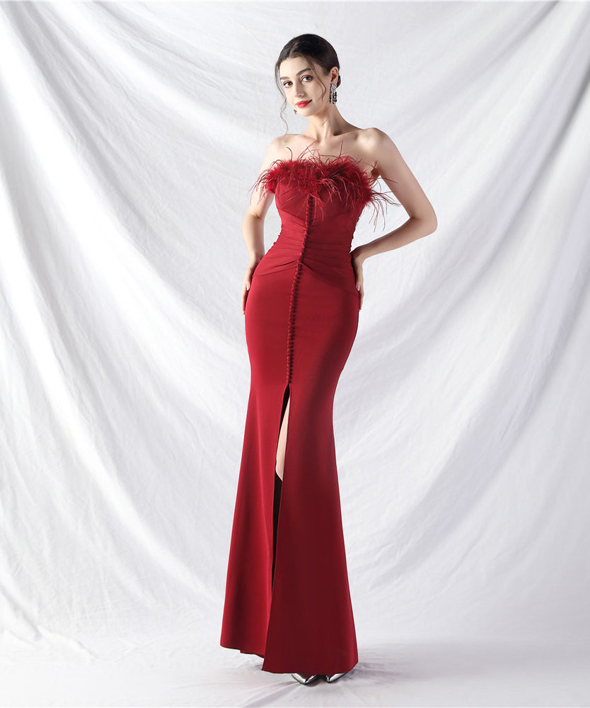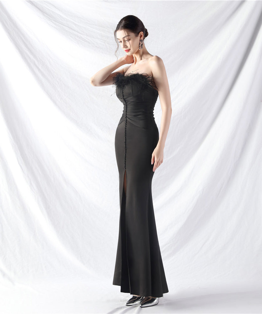 【5色】ロングドレス ナイトドレス セクシー 高級感 気質 ダチョウの羽 宴会 YH2-YEY31938#