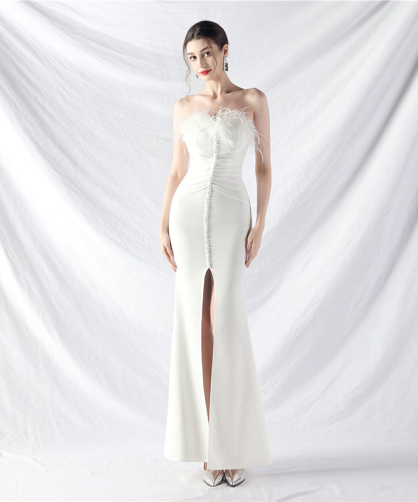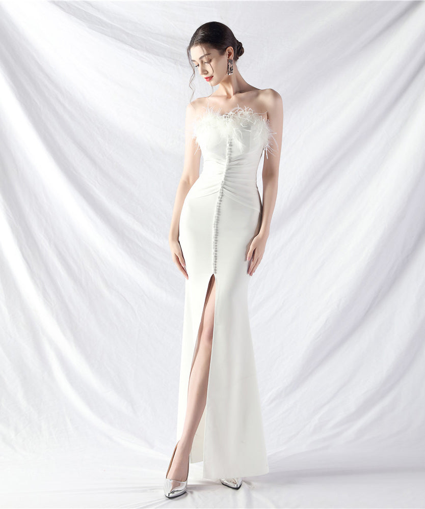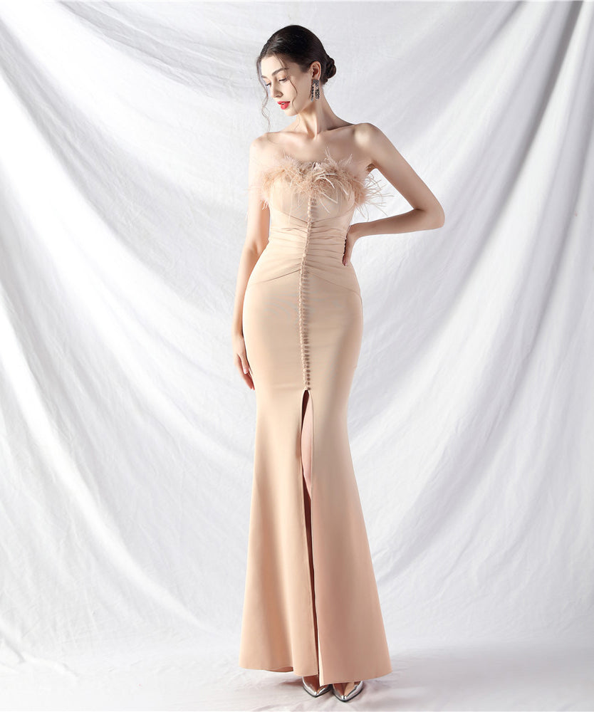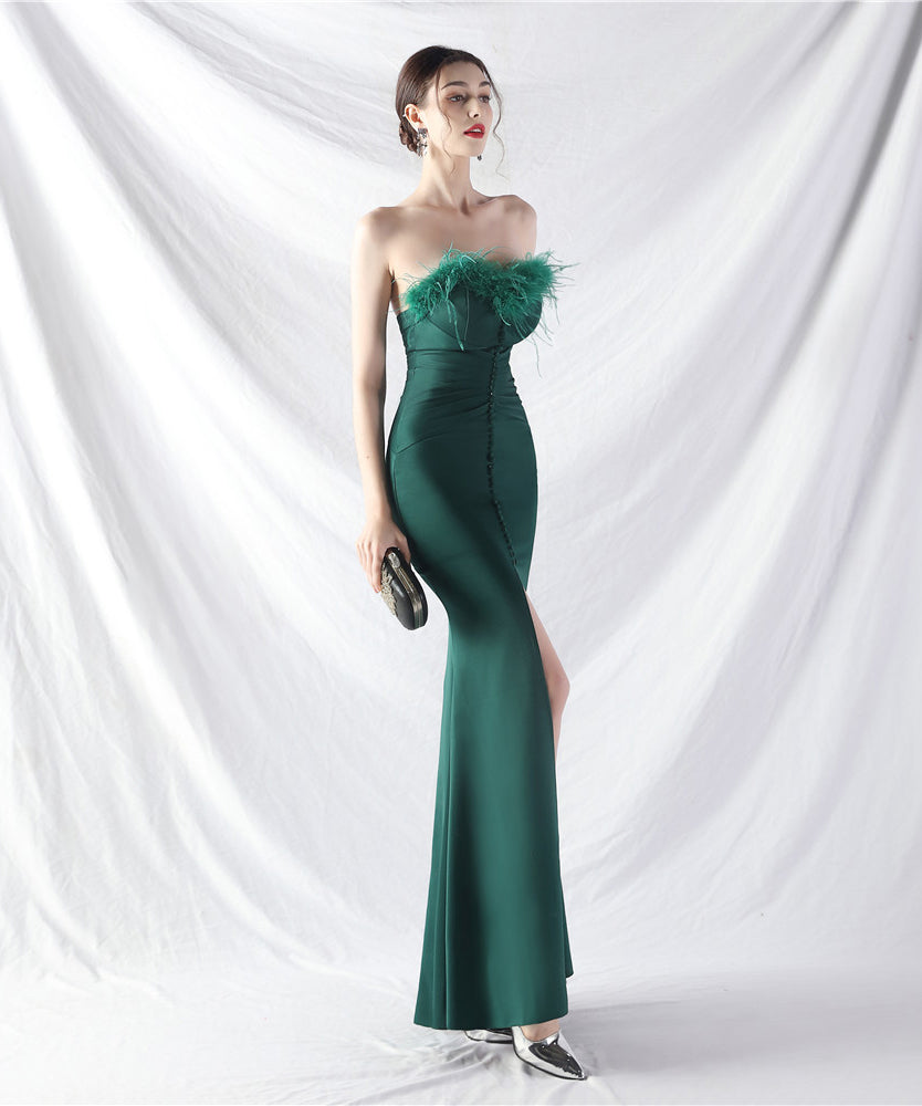 【5色】ロングドレス ナイトドレス セクシー 高級感 気質 ダチョウの羽 宴会 YH2-YEY31938#