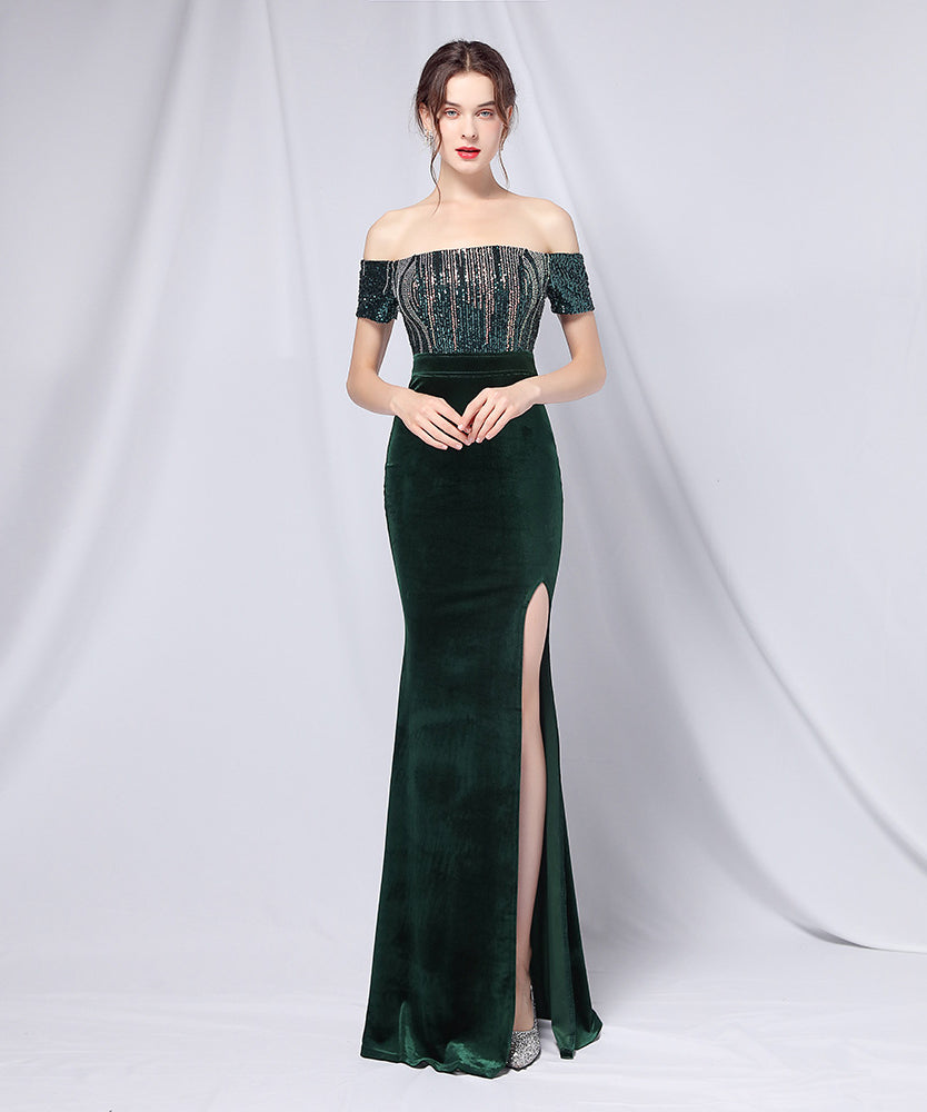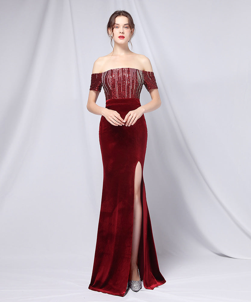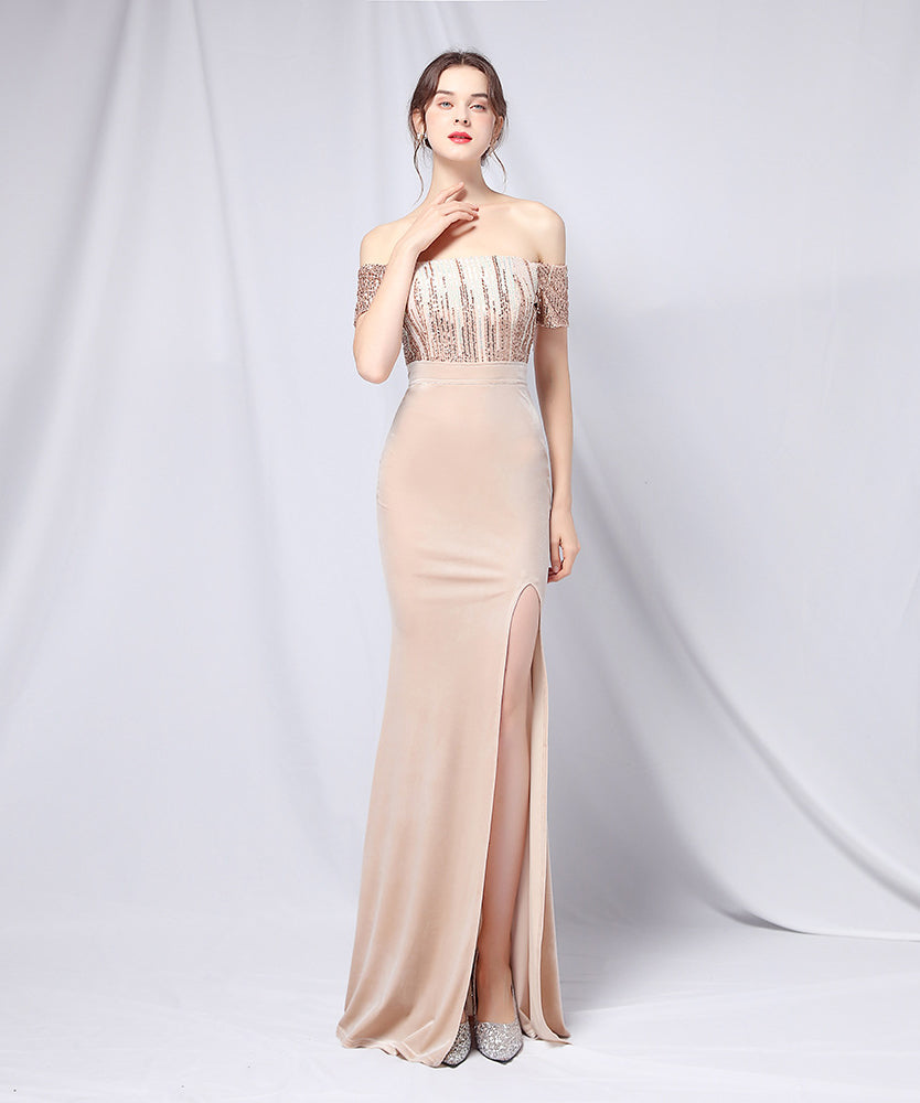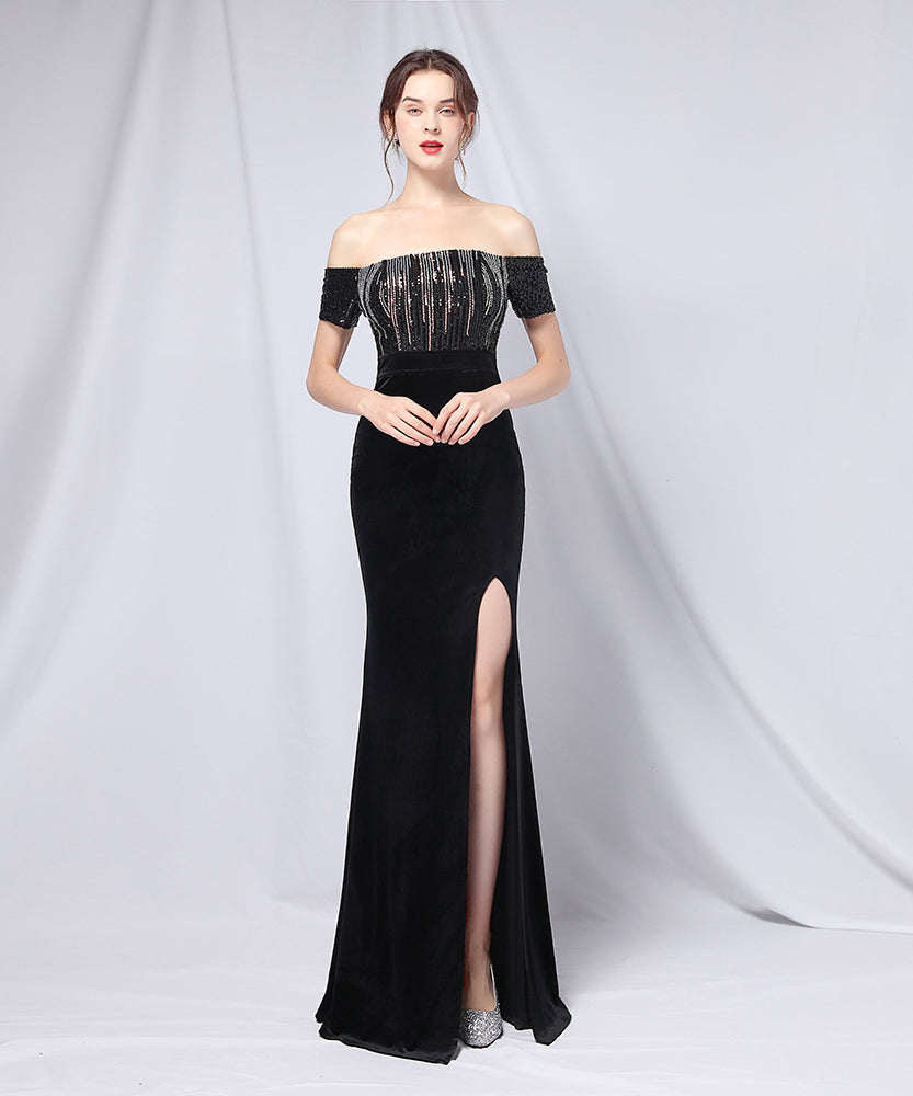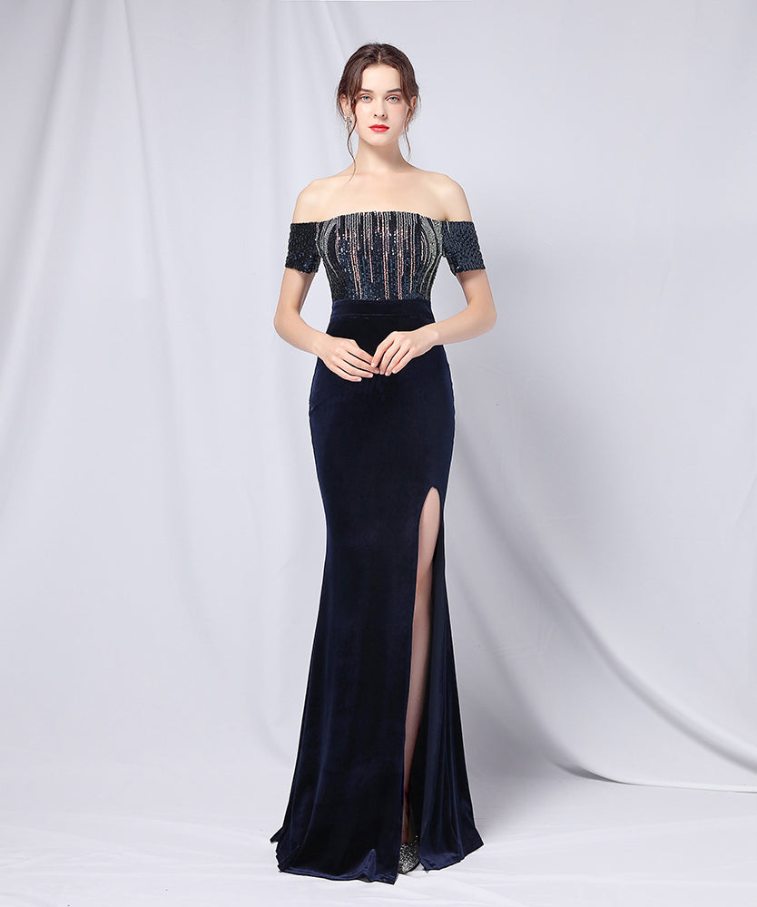 【5色】ロングドレス リボン パーティードレス キラキラ オフショルダー お姫様 誕生日 演奏会 宴会 XH2-YEY18629#