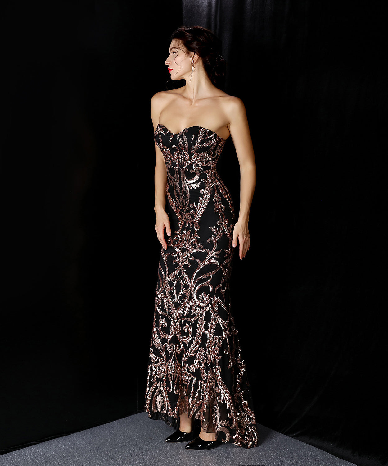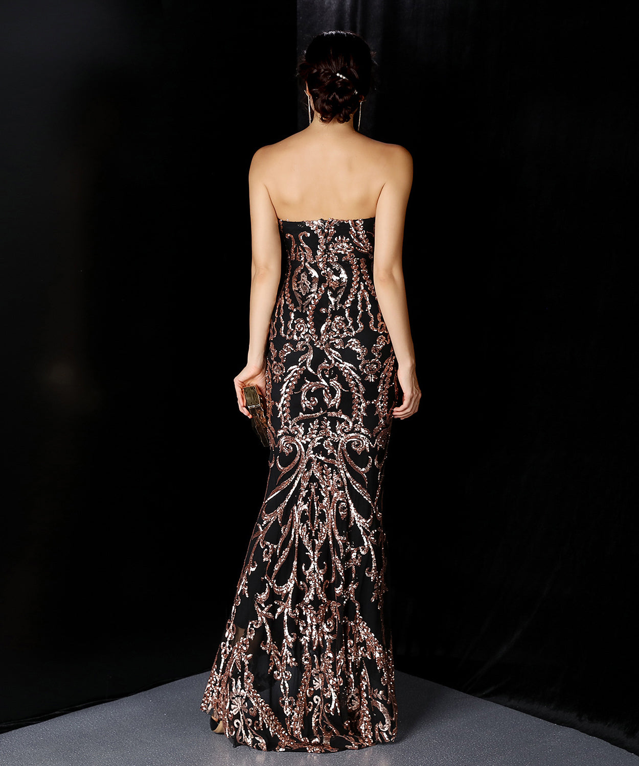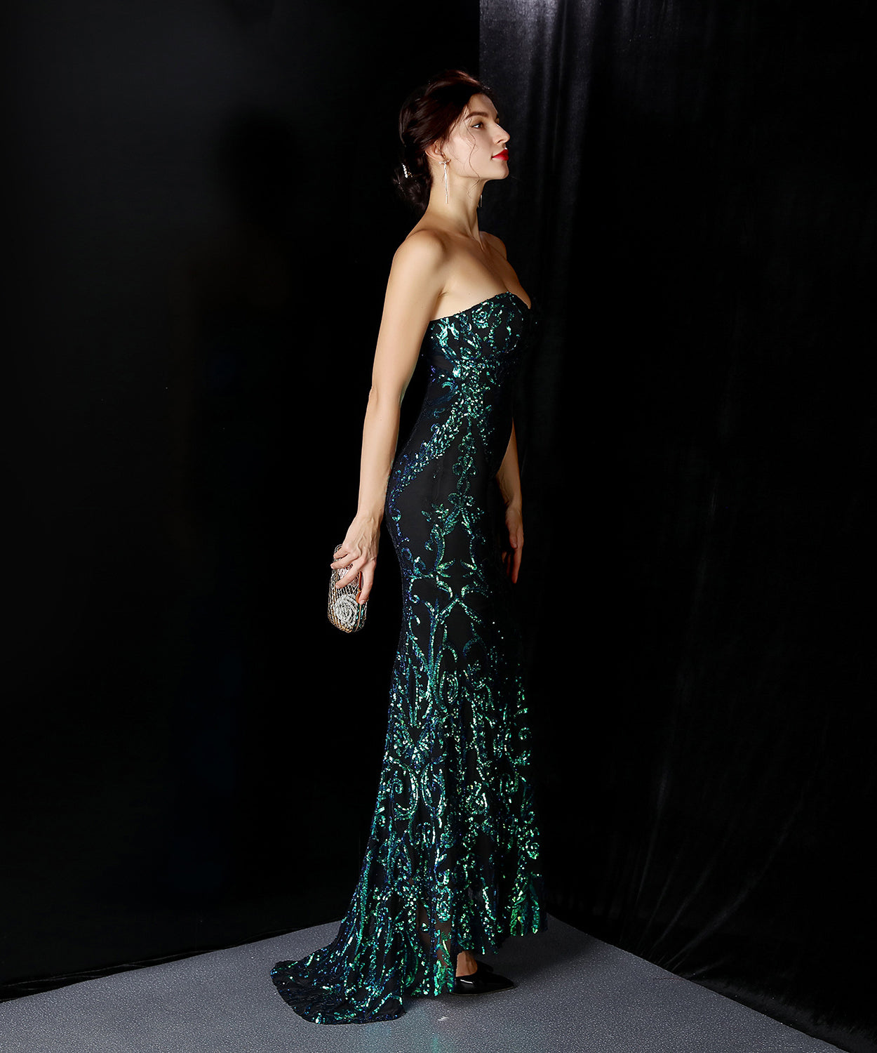 【5色】ロングドレス 宴会 気質 キラキラ 披露宴 脚長効果 ノーショルダー YH2-YEY16398#