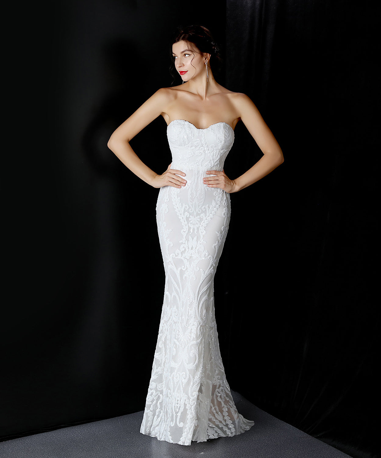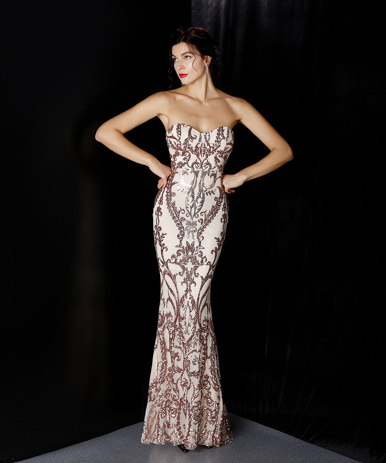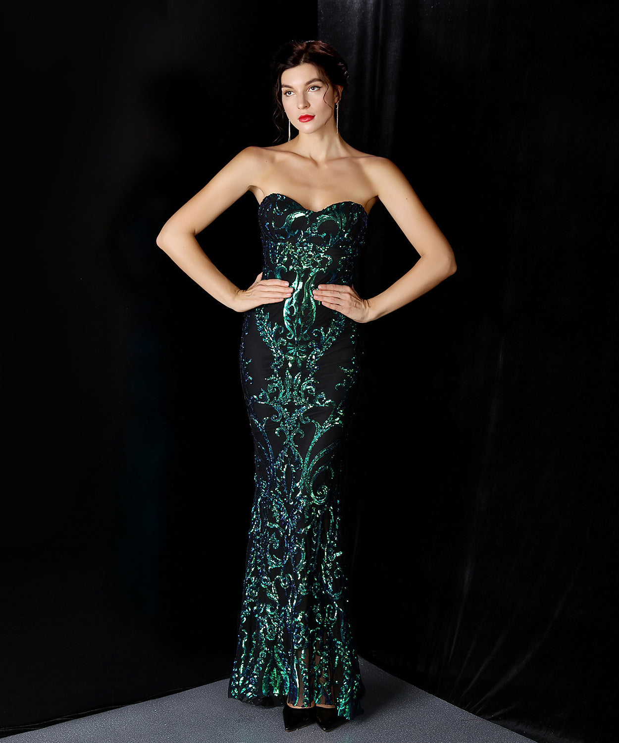 【5色】ロングドレス 宴会 気質 キラキラ 披露宴 脚長効果 ノーショルダー YH2-YEY16398#