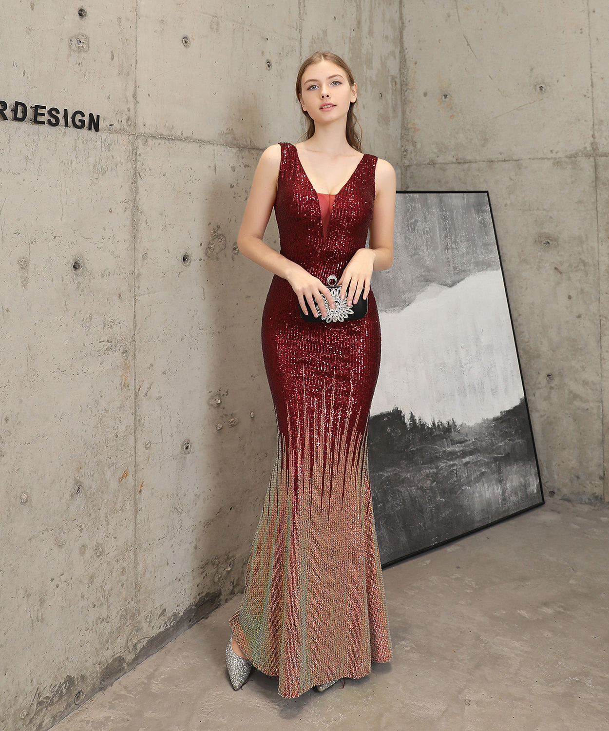 【5色】ロングドレス 高品質 キラキラ ナイトドレス 宴会 マーメイド 演奏会 XH2-YEY18079#
