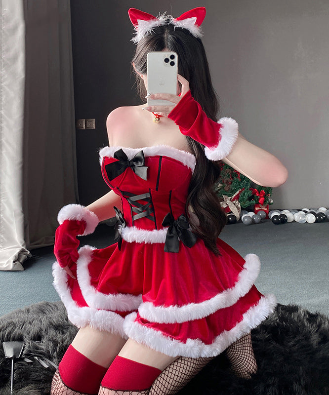 【6点セット】クリスマ 大人可愛い セクシー サンタ服 コスプレ 上下セット リボン XH2-JXL-S43