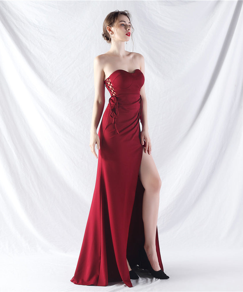 【6色】ロングドレス ナイトドレス ベアトップ 華奢感 スリート 宴会 演奏会 誕生日 XH2-YEY31902#