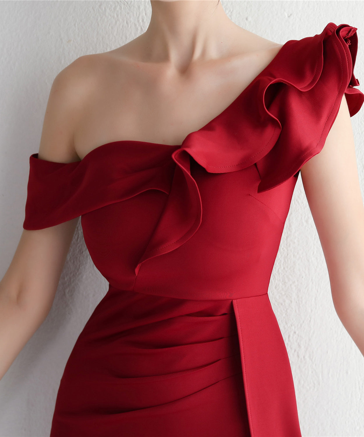 【6色】ロングドレス ナイトドレス 宴会 ワンショルダー フリル 演奏会 誕生日 XH2-YEY19559#